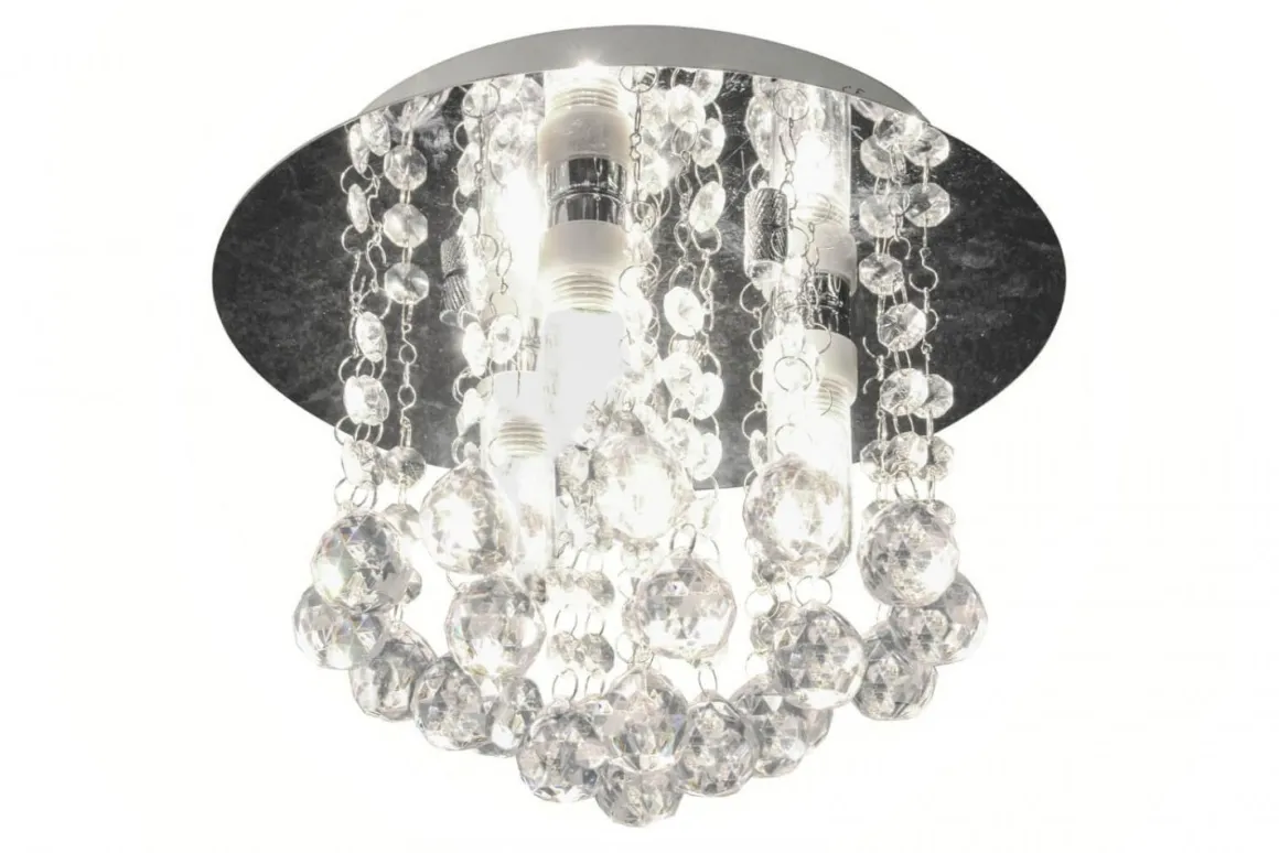 Glittrande akrylkristallkrona från Aneta belysning, även godkänd för badrum må du tro 🙂 Nicoline har plats för hela 3 stycken 40 watts G9 ljuskällor (eller motsvarande i LED) så hon lyser med enkelhet upp badrummet.