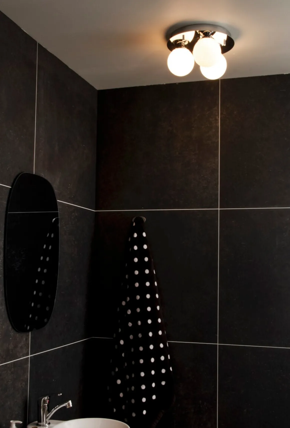 Härlig badrumslampa från Aneta belysning med en stomme i krom kombinerat med tre härliga opalvita kupor. Nicosia lyser med sina 3 ljuskällor upp ditt badrum lätt som en plätt.