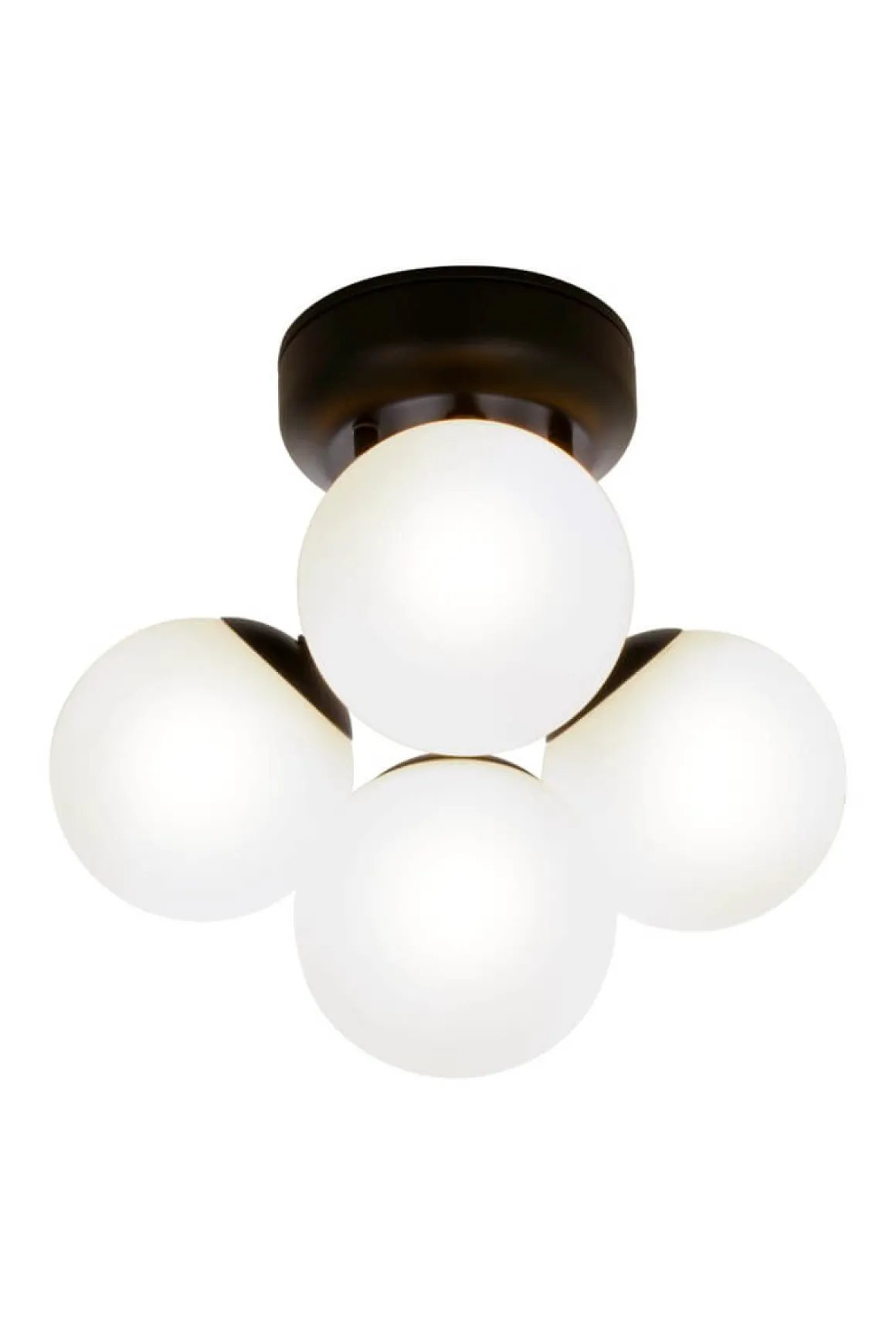 Härlig badrumslampa från Aneta belysning med en stomme i svart kombinerat med fyra härliga opalvita kupor. Nicosia lyser med sina 3 ljuskällor upp ditt badrum lätt som en plätt.