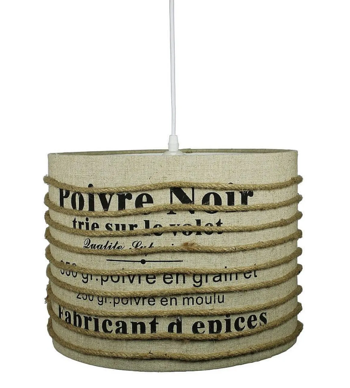 Taklampa i härligt Linnetyg från Oriva med vit sladd med krokupphäng.