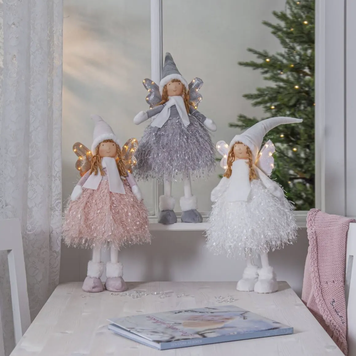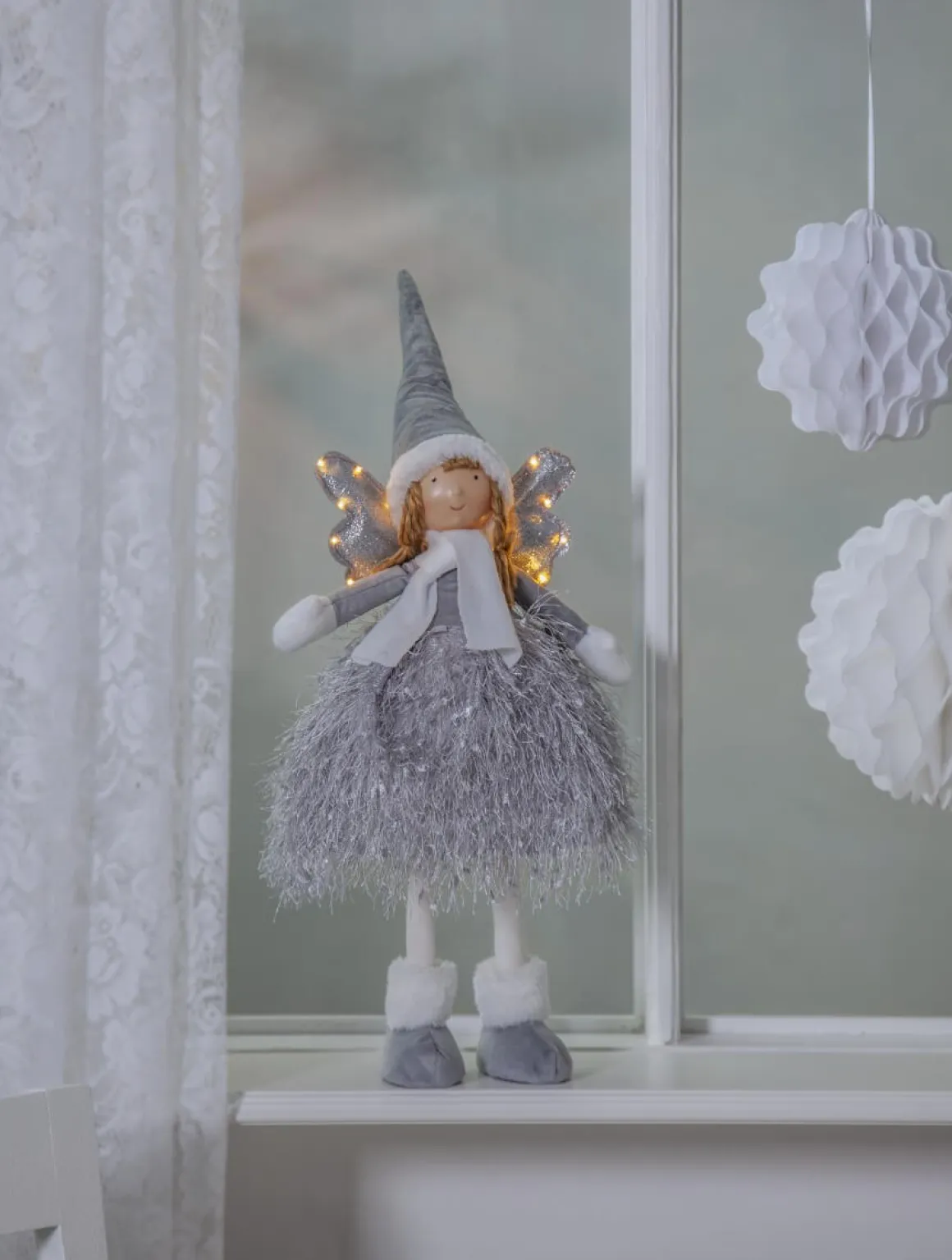 Men käre tid vilken söt liten nyhet, vackra ängeln Nova med lysande vingar är ett måste i var mans hem och stuga. Nova drivs med batterier vilket gör att hon är så lättplacerad i ditt hem. Här ser du Nova i grå klädsel med matchande skor. Sååå söt!