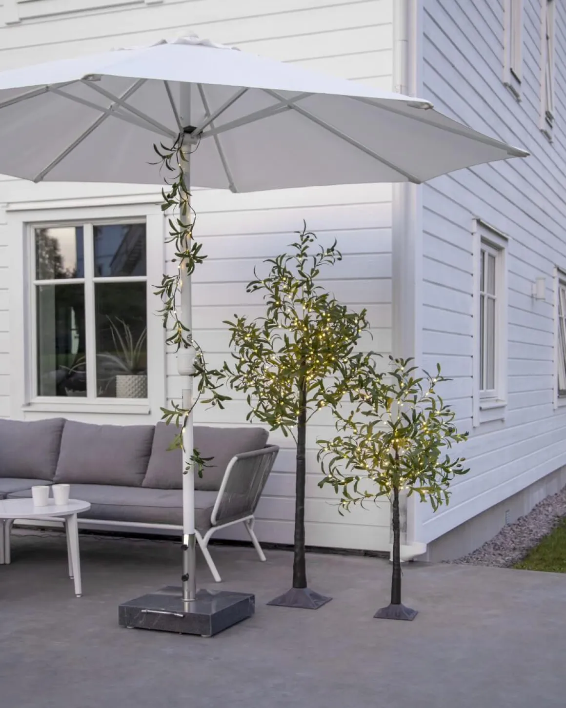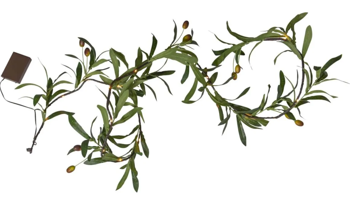 Dekorativ 180 cm lång formbar girlang med olivblad och oliver från Star Trading. Ger ett behagligt varmvitt sken och passar som dekoration både inom- och utomhus. Batteribox med timerfunktion och för utomhusbruk.