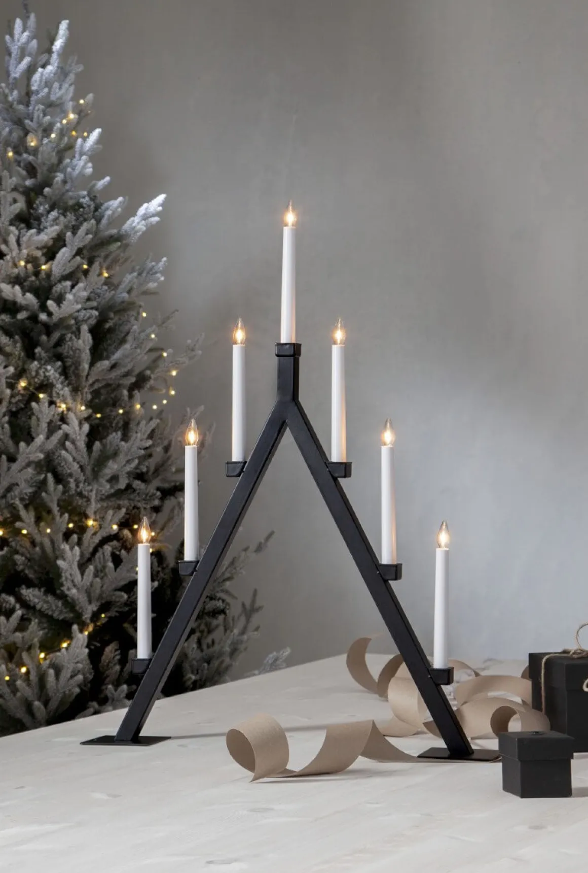 Oliver är en elegant stor 7-armad metalljusstake i svart metall från Star Trading. Placera ljusstaken i fönstret eller på golvet för att skapa en härlig adventstämning i hemmet.