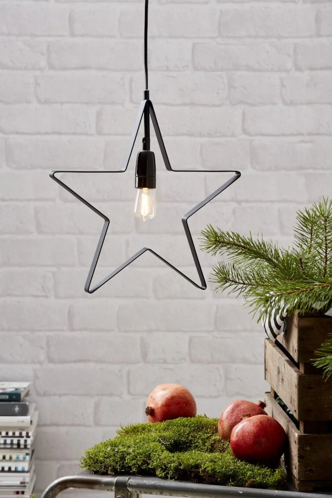 Så vacker metallstjärna i all sin enkelhet med svartlackad lamphållare och en vacker mini navigations LED-ljuskälla!