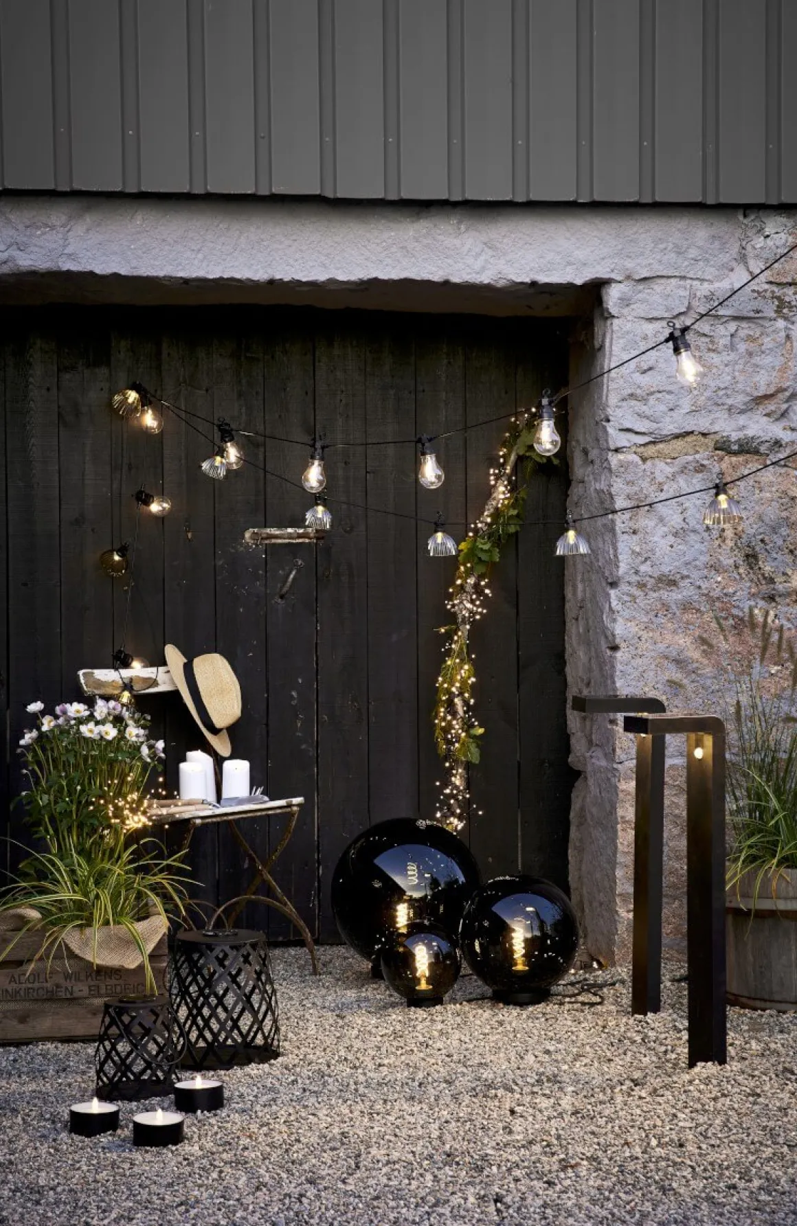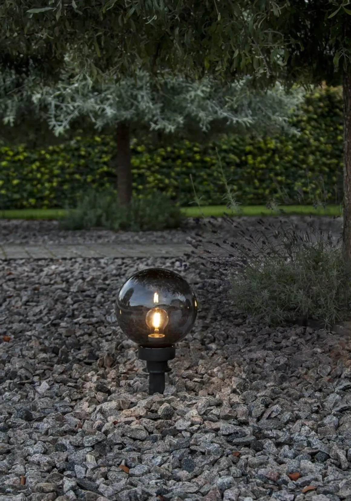 Äntligen är de här, Orby trädgårdsdekoration i form av ett rökfärgat klot med en E27 sockel i mitten så du enkelt kan sätta din egna personliga stil på underverket med val av ljuskälla. Orby gör sig lika väl ensam som i sällskap av sina kompisar i varierande storlekar. Här ser du lilla Orby 24 centimeter.