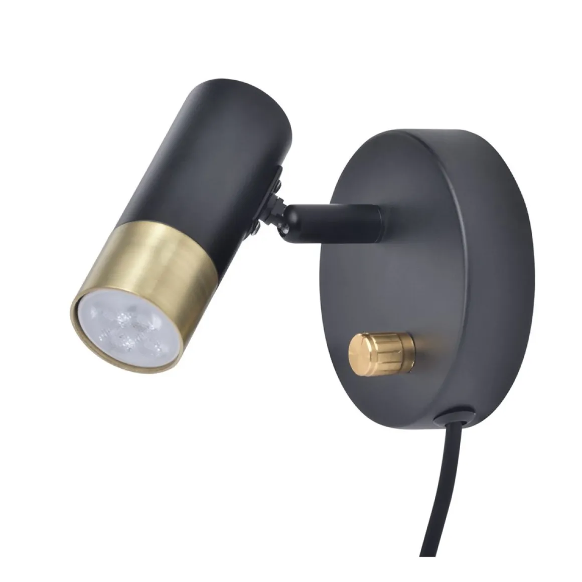 Väggspotlight i svart/mässing från Oriva med dimmer inklusive utbytbar mini GU10 LED.