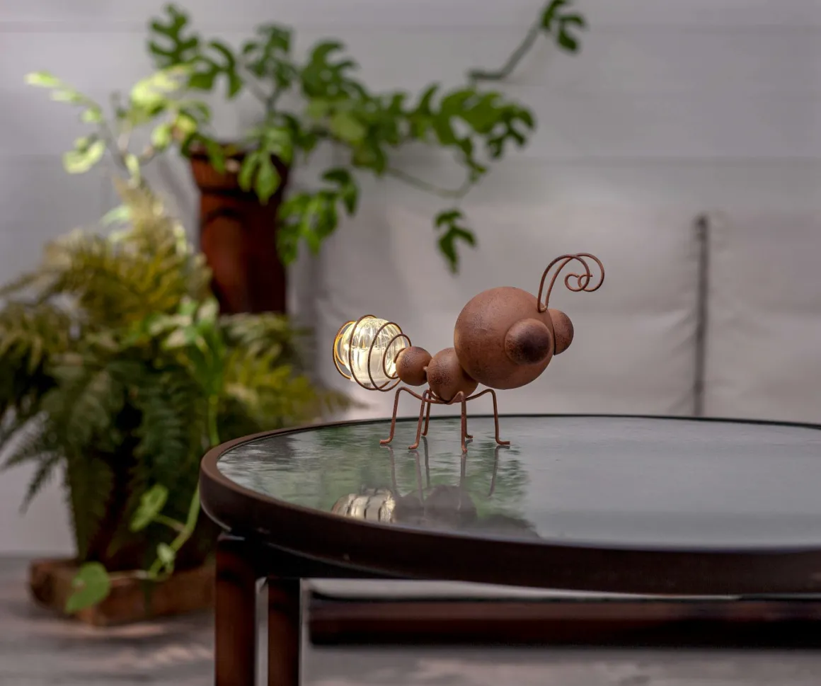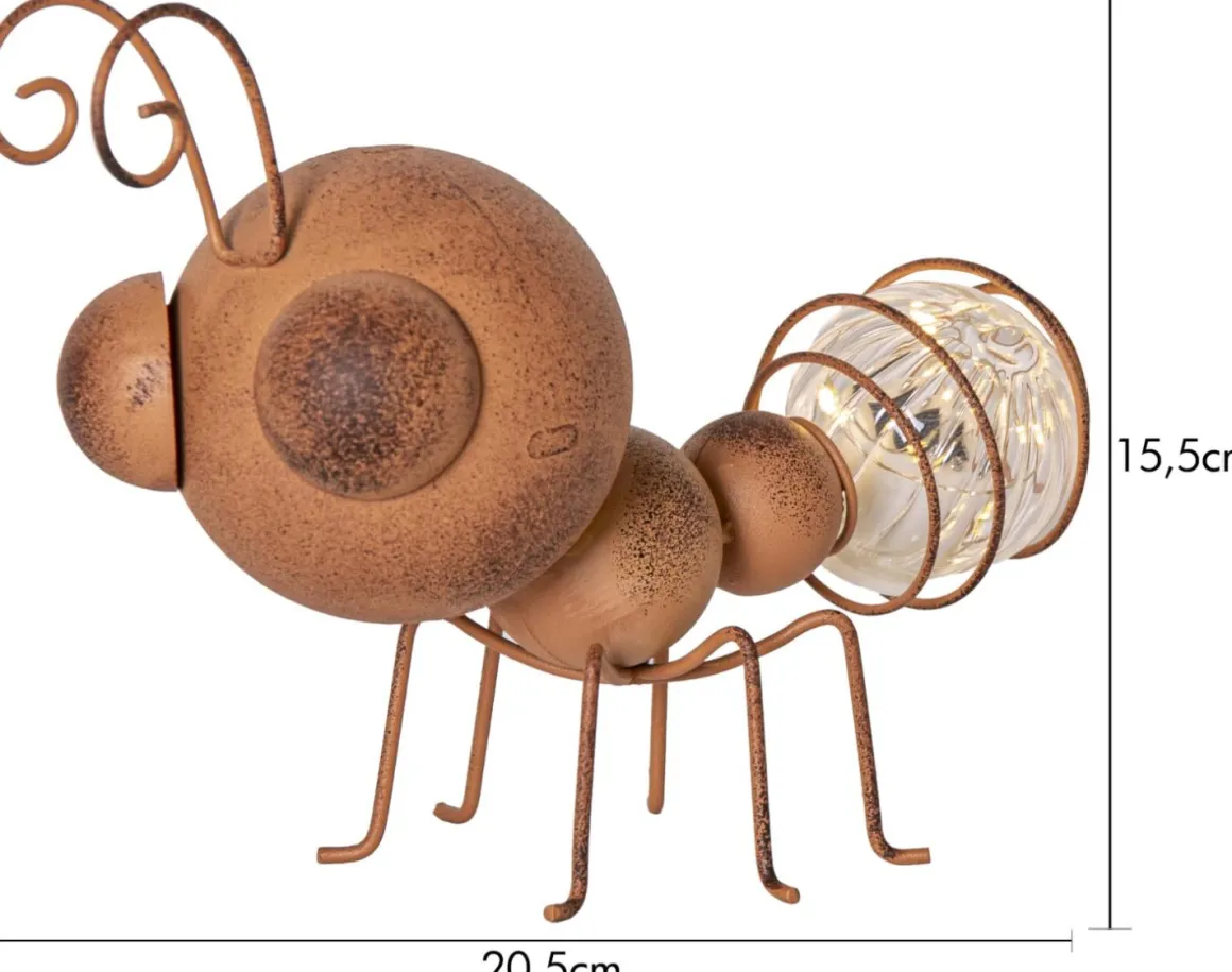 Oxida Myra är ett fint komplement till våra övriga Oxida dekorationspinnar. Denna dekorativa lilla myra är perfekt att placera i en blomsterkruka eller rabatt och är lika vacker både tänd och släckt. När mörkret faller lyser den upp med 6 små ljuspunkter som blinkar mjukt. För att säkerställa att det medföljande batteriet får optimal laddning, placera belysningen där solen kan nå panelen under dagen. En underbar detalj för att skapa stämning i din trädgård!