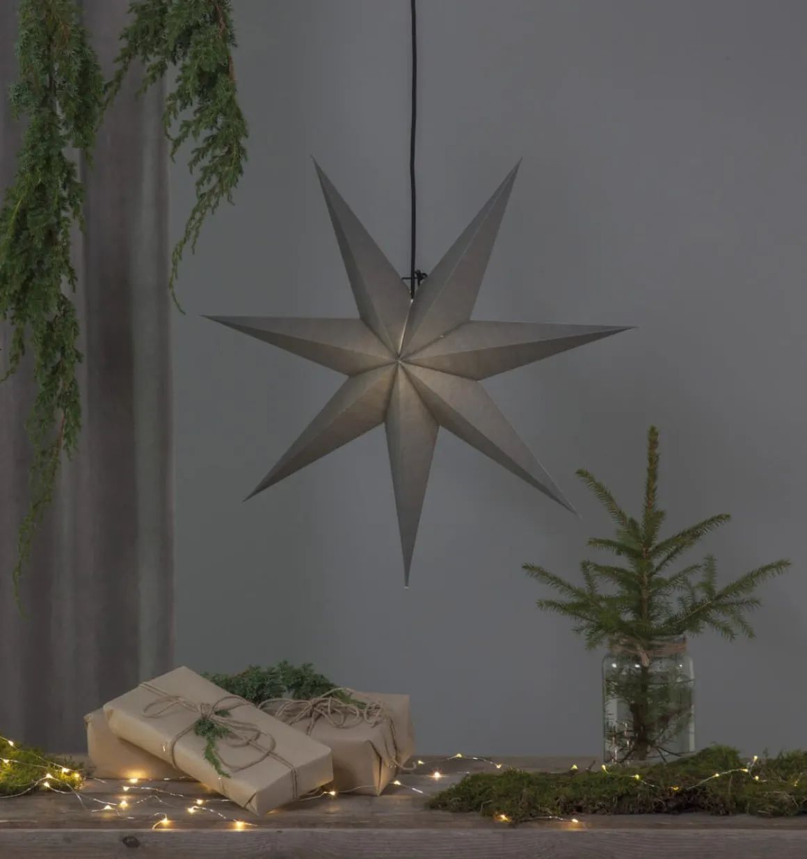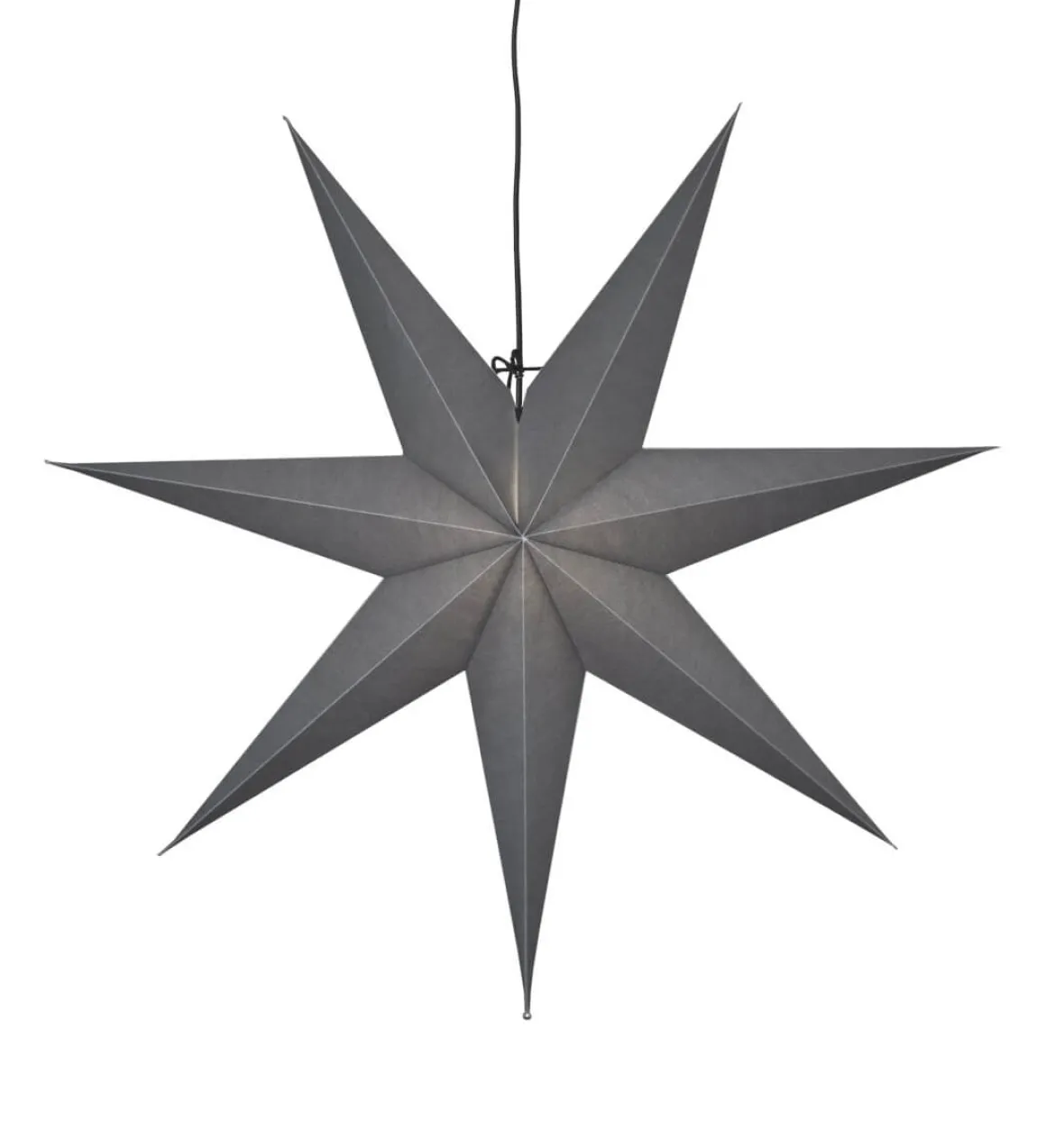 När stilrent och enkelt får vara bäst! Ozen är en helt slät stjärna i grått med svart kabel, dess enkelhet blir blir ett självklart blickfång i ditt hem!