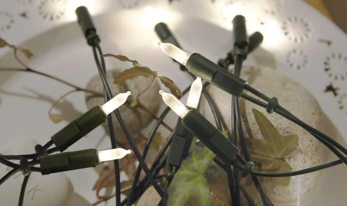En liten nätt LED-ljusslinga med 35 varmvita led. Passar alldeles utmärkt att pynta med i den lilla lilla granen eller varför inte i en vas.