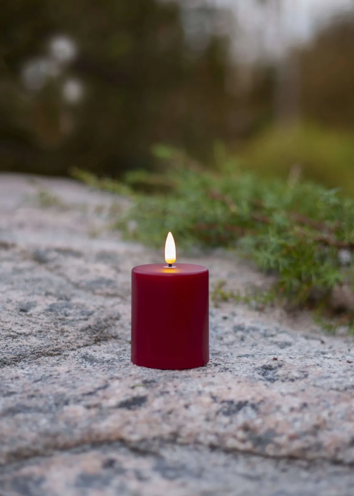Klockrent gravljus i röd plast med inbyggd ljussensor och den verklighetstrogna flamme lågan. Ljuset lyser bara under dygnets mörka timmar. Drivs med 2 st LR14 batterier för vääääääldigt lång drifttid!