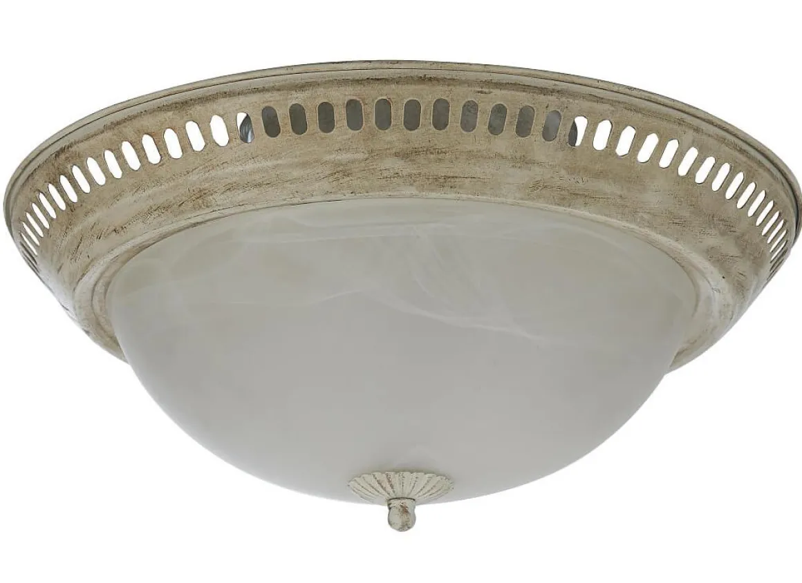 Klassisk takplafond i antikvit finish med muranoglas från Oriva