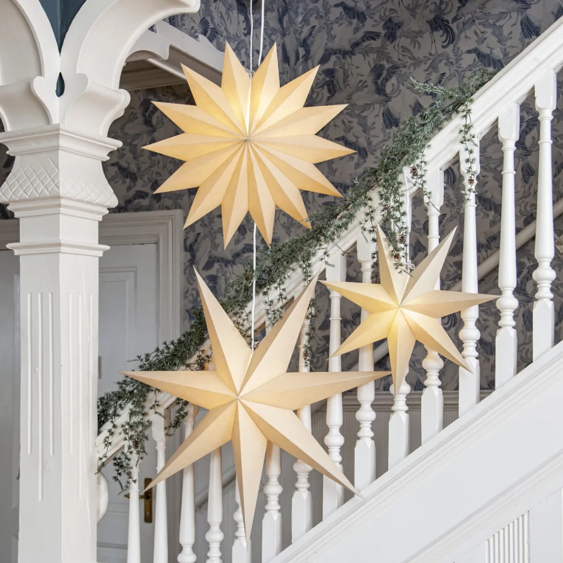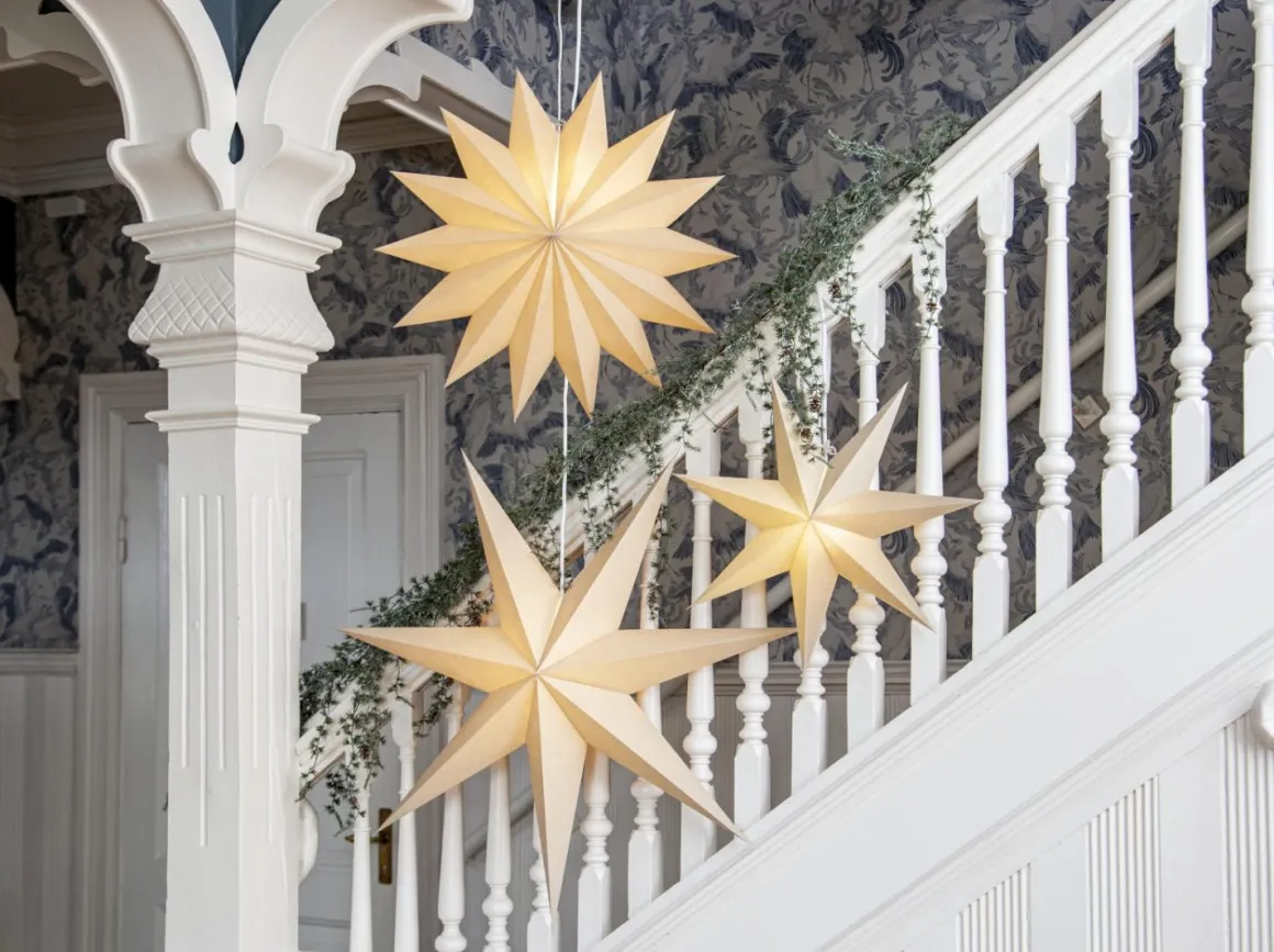 Beige pappersstjärna med hela 14 uddar(!). Ljuvlig stjärna att hänga i fönstret eller luta mot en vägg. Stjärnan sprider mysig stämning och ger hemmet den där speciella advent ochjulkänslan. Sladdställ och ljuskälla köpes separat.