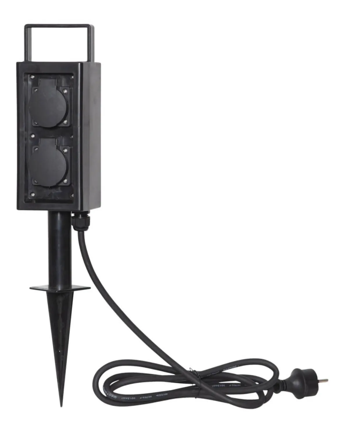 Förgreningsbox på spett från Star Trading med 4 pluggar. Perfekt för uteplatsen eller trädgården varhelst du kan tänka dig att behöva lite fler uttag… dvs typ överallt. Total kopplingskapacitet är max 3680 Watt.