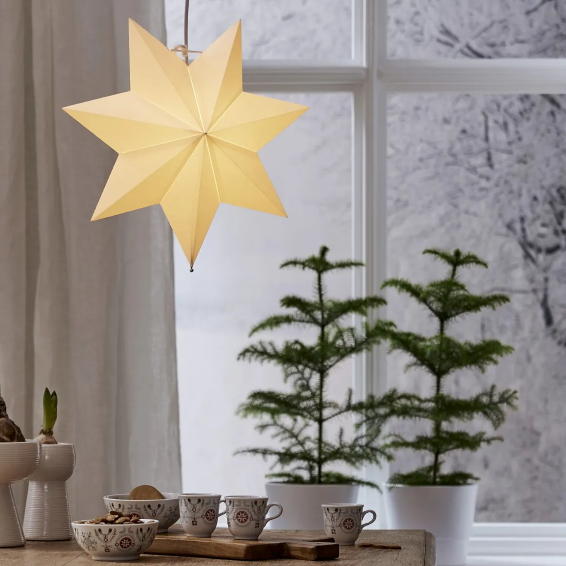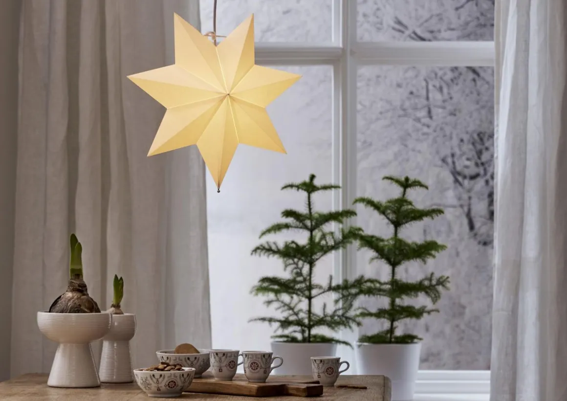 Lös Vit Pappstjärna Polar 40 cm med metallhållare för montering på fot eller som hängande. För inomhusbruk.