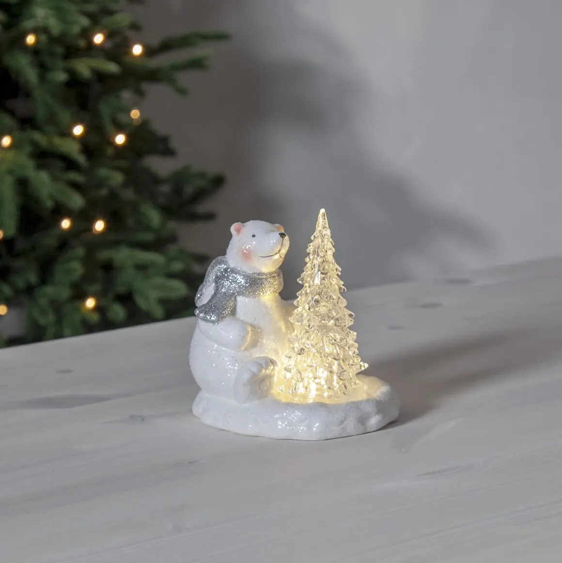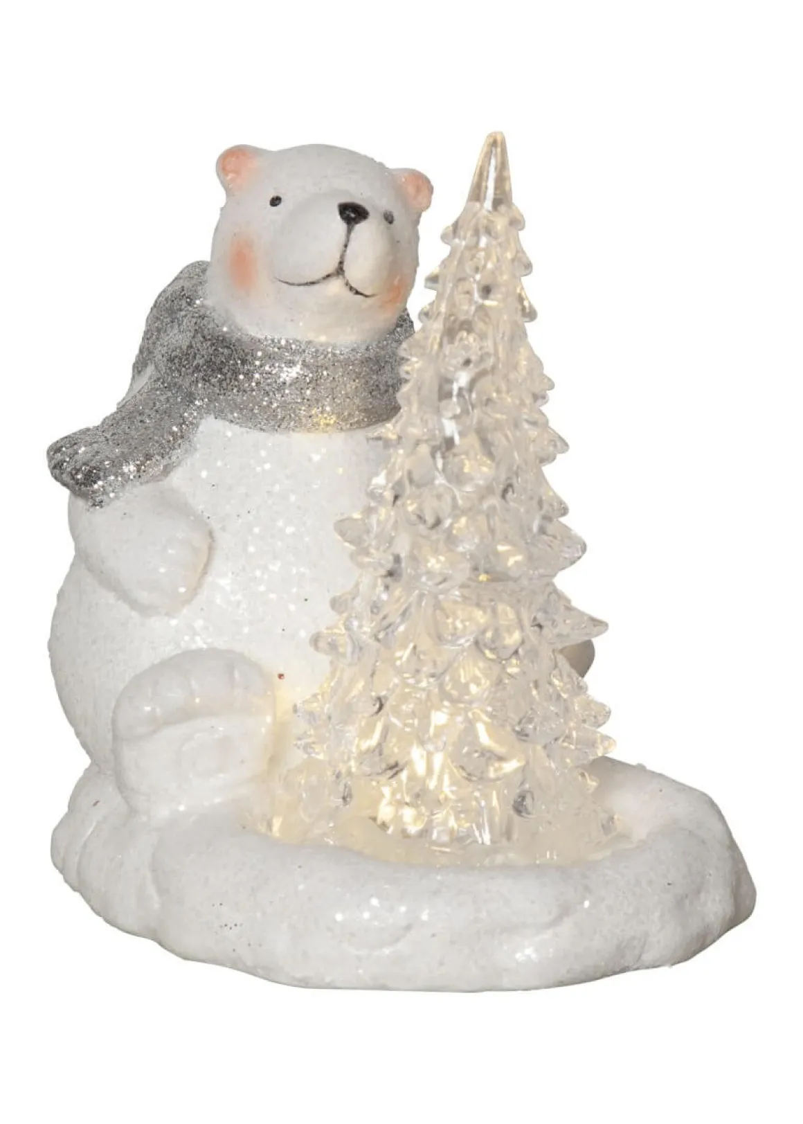 Så söt liten isbjörn med en gran i famnen, det lyser fint och mjukt i den lilla granen. Isbjörnen är vit med en härligt frostig känsla. Polare har timer funktion och drivs av 2st AG13/LR44 batterier som ingår. Härlig dekoration till vintern och julen. Dekorera barnrummet eller placera den på ett bord eller hylla för en härlig advent och julstämning.