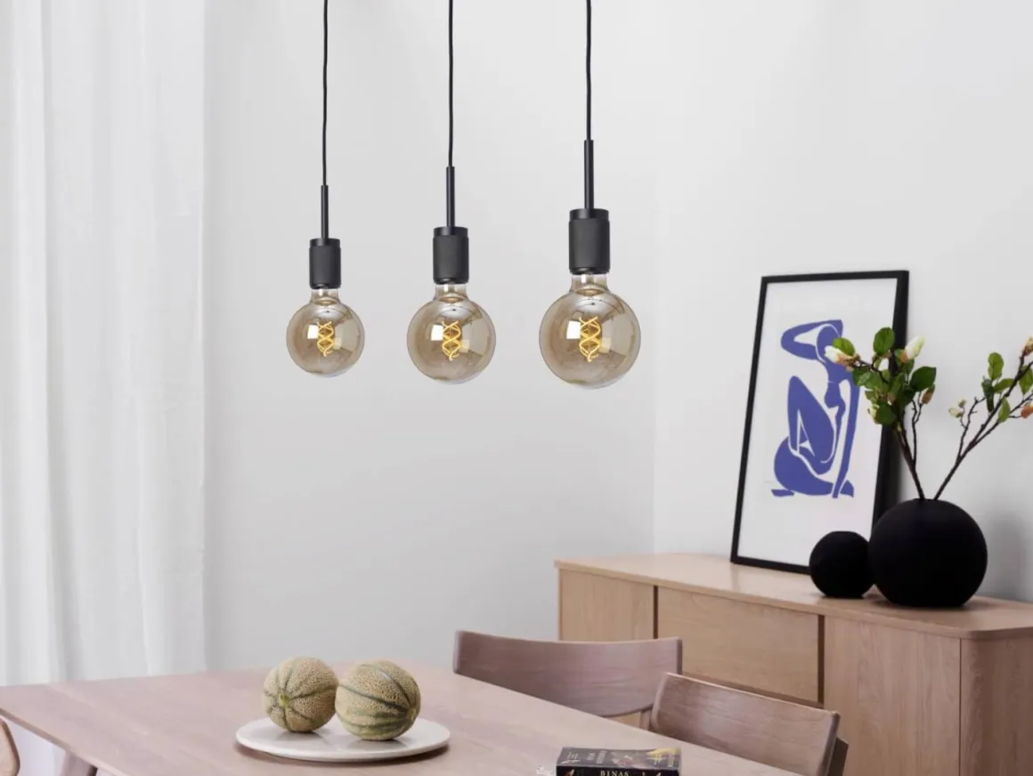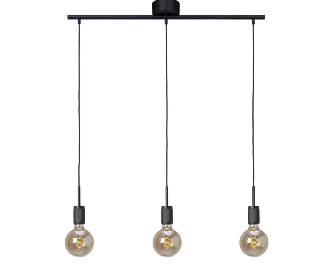 Stilren taklampa från Cottex i svart med 3 stycken räfflade lamphållare. Vilken ljuskälla du önskar till väljer du självklart helt själv. Plats för takkontakt och krokupphäng för en snabb och smidig installation.