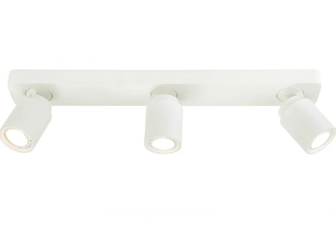 Superstilren spotlight helt i vitt från Aneta belysning, Här ser du Rollo som en rak skena med 3 vridbara spottar. Fast installation gör att den ligger tätt emot taket.