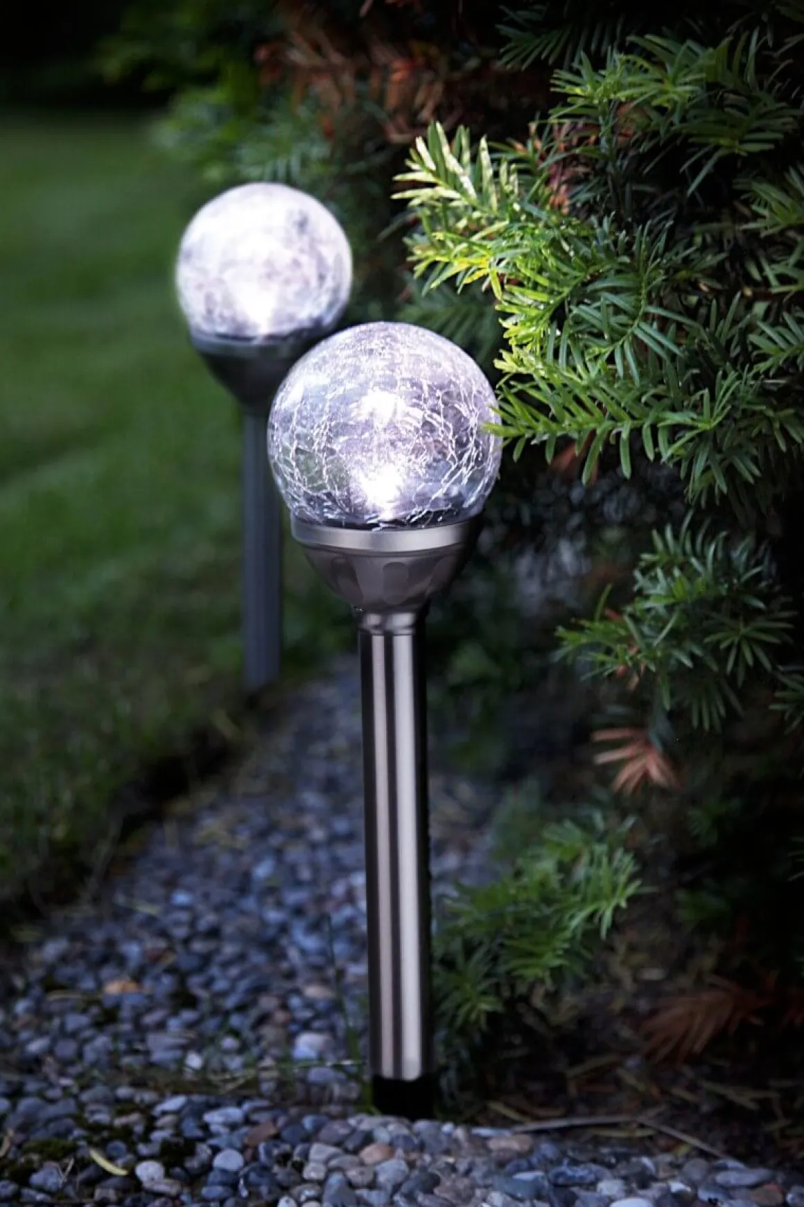Åhhhh så söta små solcellslampor från Star Trading men en vackert lysande glaskula på en fot av borstat stål.