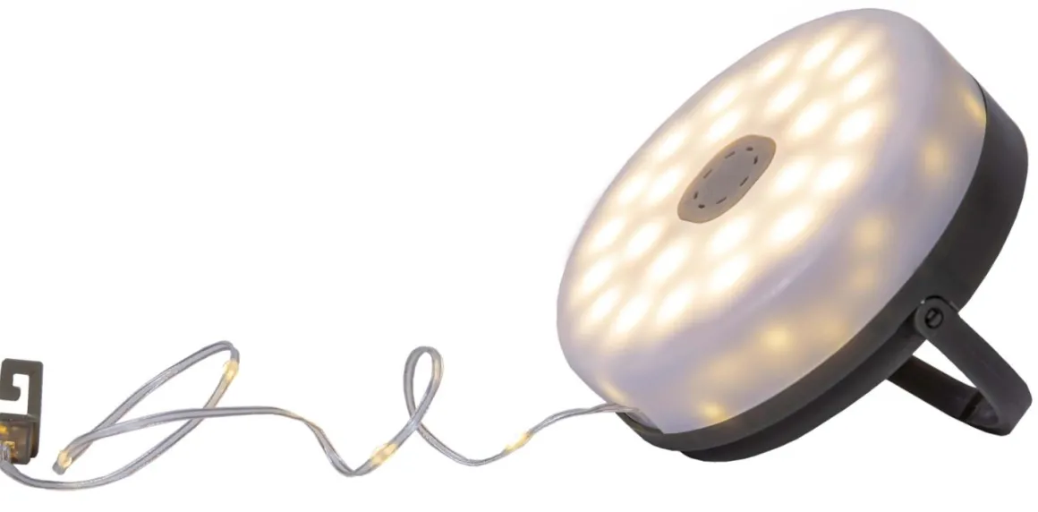 Praktisk uppladdningsbar slinga på rulle, perfekt för camping och utflykt. 10 meter lång med 100 varmvita LED-lampor som ger fast eller pulserande ljus. Fästs enkelt med magneter och krok. 24 varmvita LED med dimfunktion, 8 röda LED för SOS-blinkning och en ficklampa. Timer med 4, 6 eller 8 timmar. Laddas på 6 timmar, lyser i upp till 12 timmar. Fungerar även som powerbank med USB A och C-uttag.
