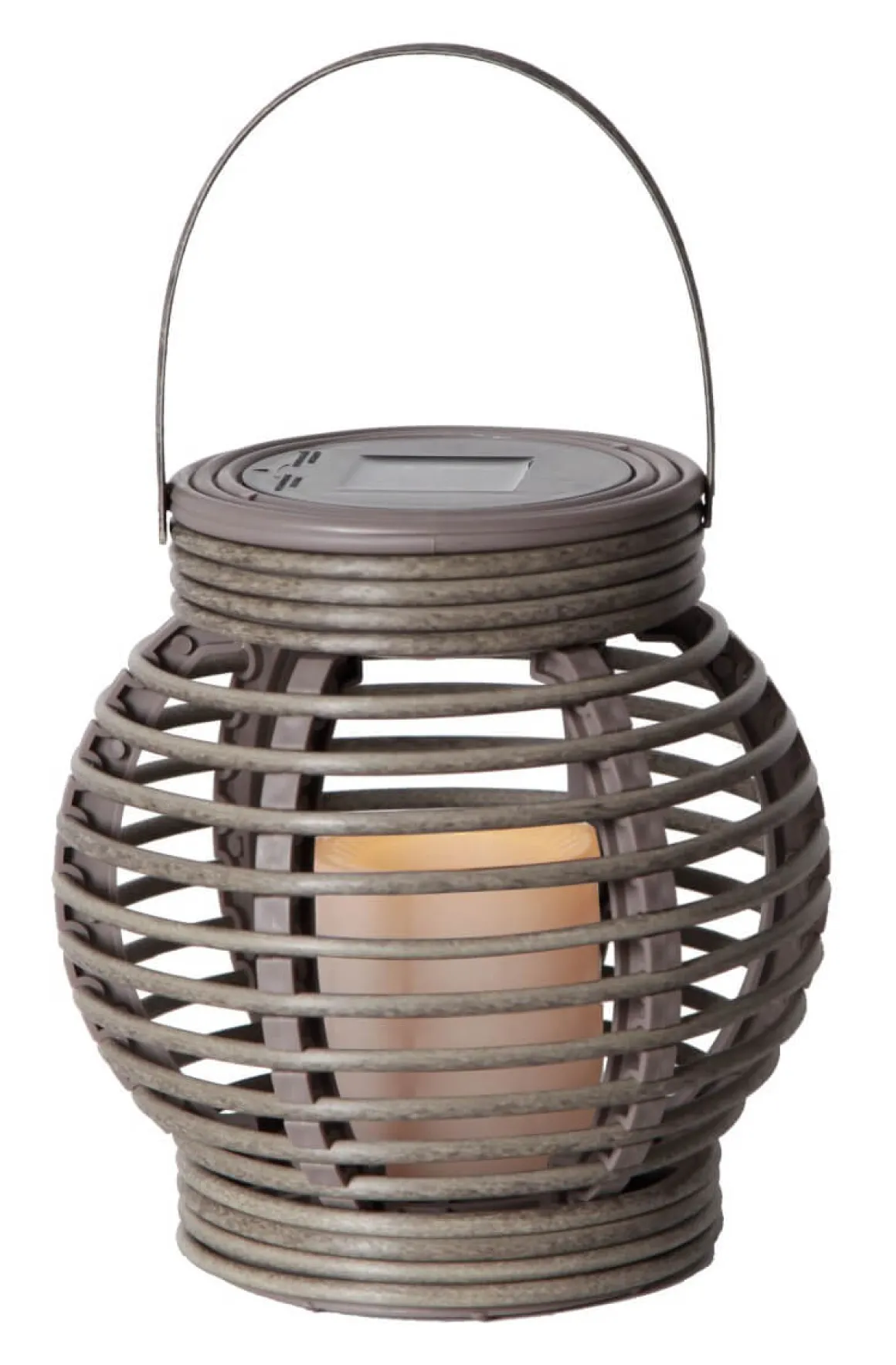 Grå konstrotting lykta. Lyktan drivs av solceller och har 1 LED-ljuskälla med fint sken. Vacker dekoration att ha i trädgården.