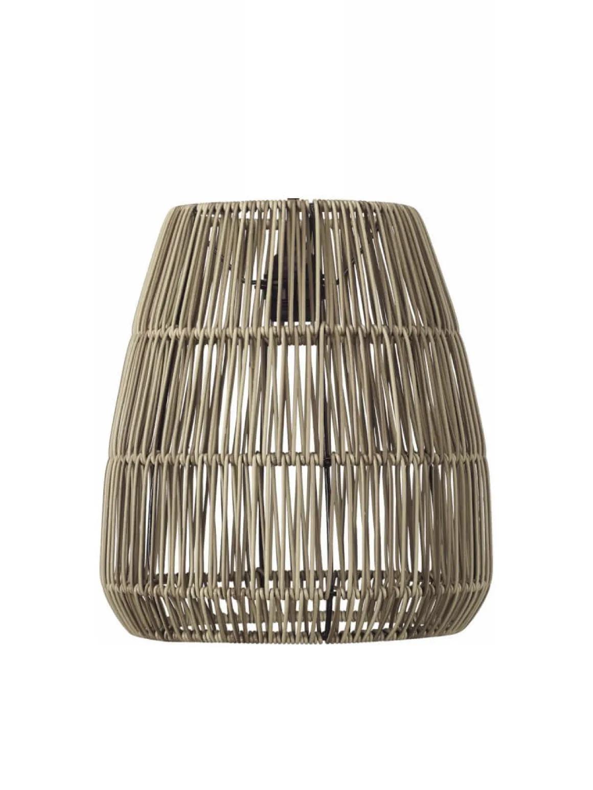 Saigon 28 cm, en utomhusskärm i konstrotting från PR-Home. Konstrotting är ett tåligt material som klarar väder och vind. Den flätade strukturen skapar ett vackert ljusspel. Kombineras med Flex Out takupphäng för utomhusbruk.