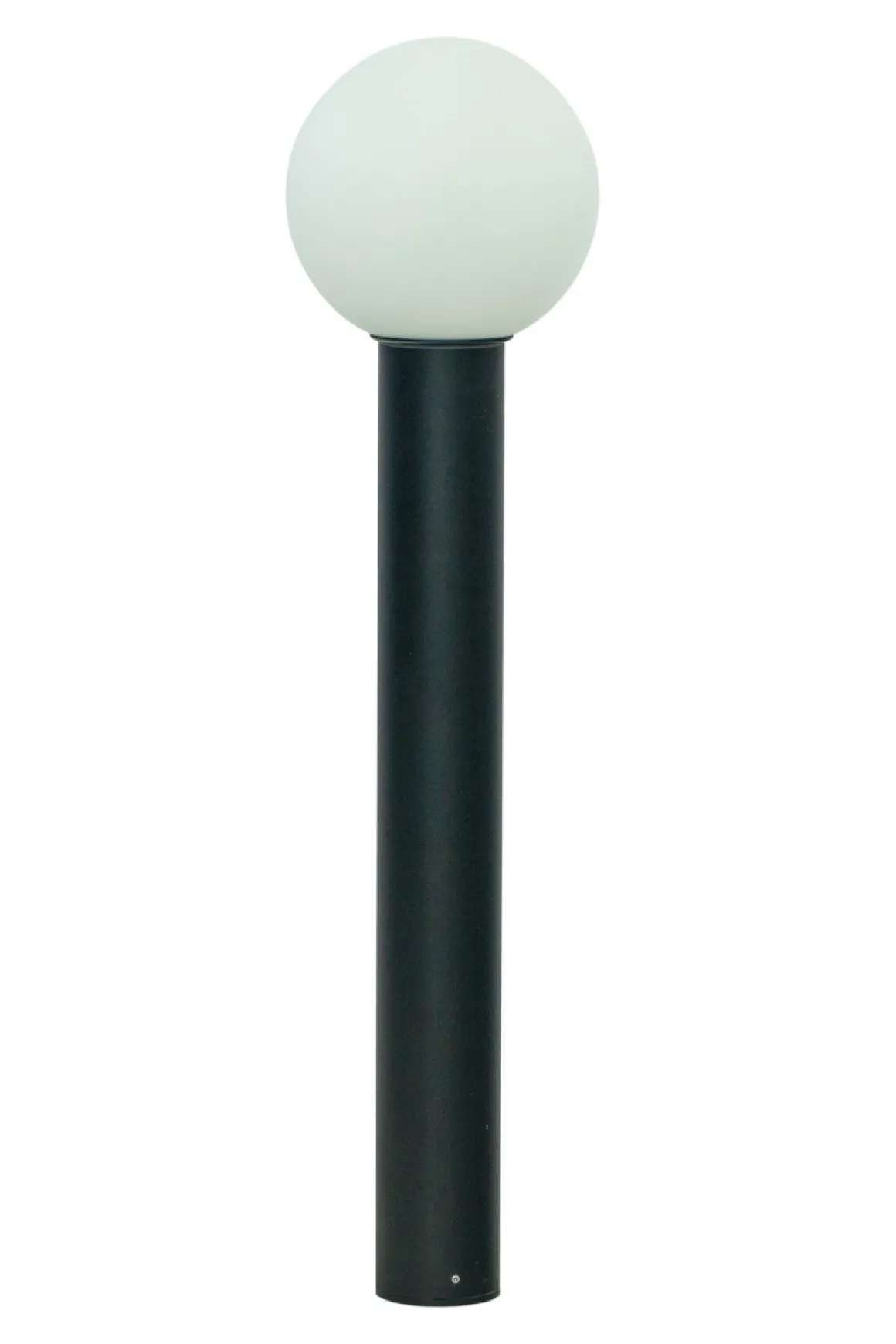 Stilren pollare från Aneta belysning med svart bas och opalvit kupa. Lättplacerad stilren stolpe som passar in i stort sett överallt.