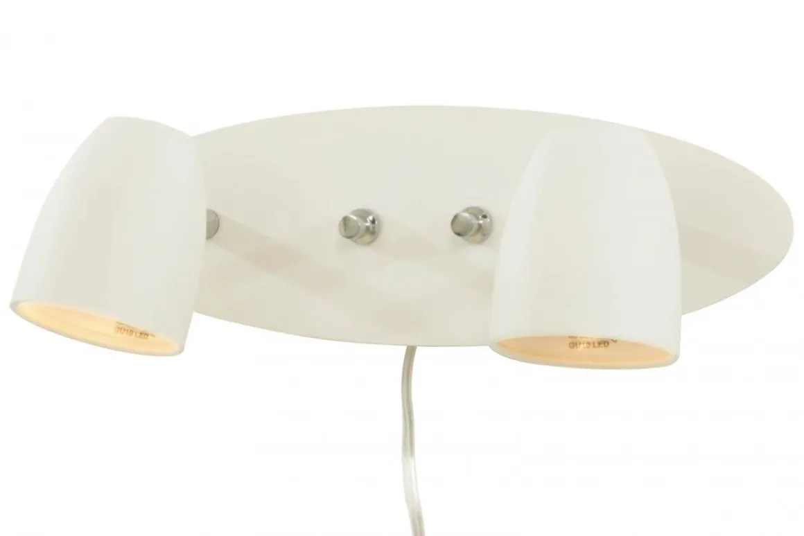 Dubbel sänglampa av modellen Sandnes från Aneta, perfekt läslampa med en dimmer till varje spotlight så ni slipper enas om ljusstyrkan 😉 Här ser du Sandnes i vitt.