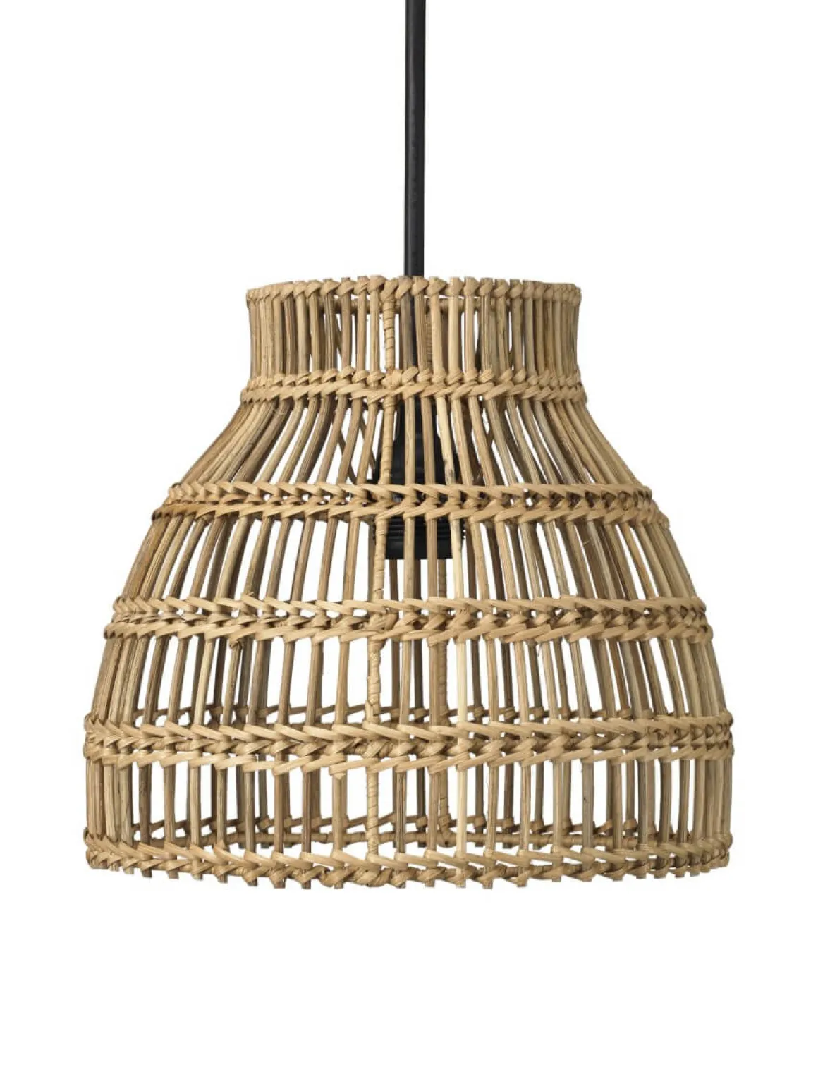 Sarah är en skärm i flätad rotting från välkända PR-Home. Skärmen med dess unika form och flätning silar ljuset och skapar ett vackert skuggspel. Passar lika bra utomhus, i växthus och uterum som inomhus.Levereras komplett med svart Flex Out utomhuskabel på 2,5 m. Tänk på att det är ett naturmaterial och att väder och vind kan komma att påverka utseendet. Här ser du lilla Sara på 27 cm.