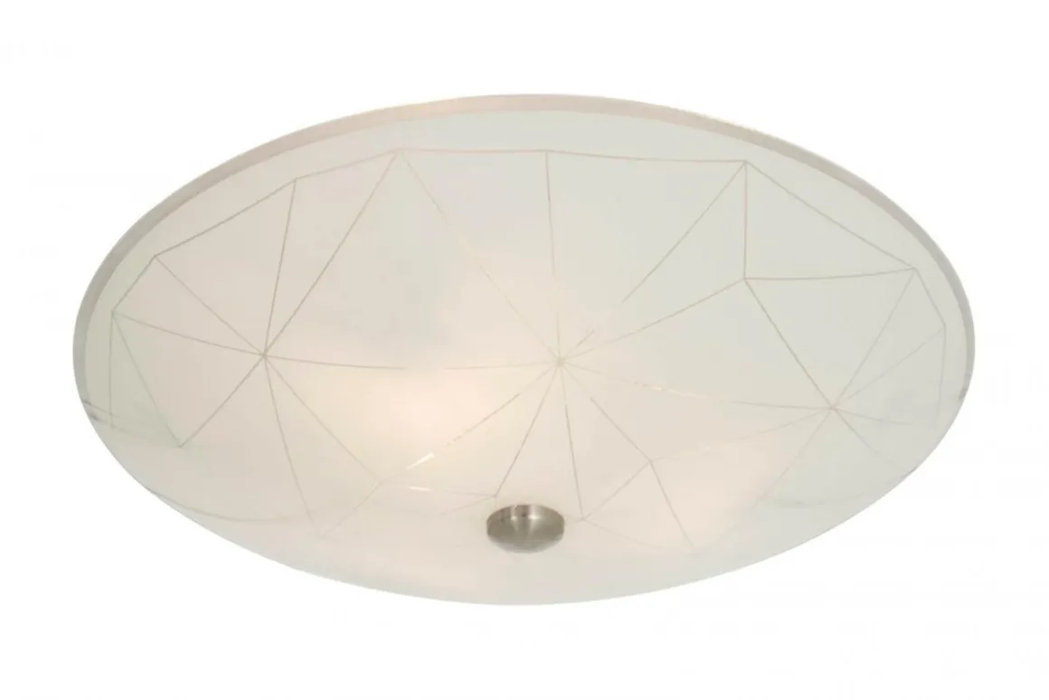 Basplafond från Aneta med vackert mönstrat glas och krokupphäng för en snabb och smidig installation. Sektor rymmer tre stycken ljuskällor av modell E14.