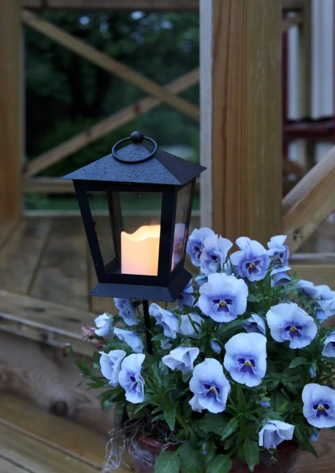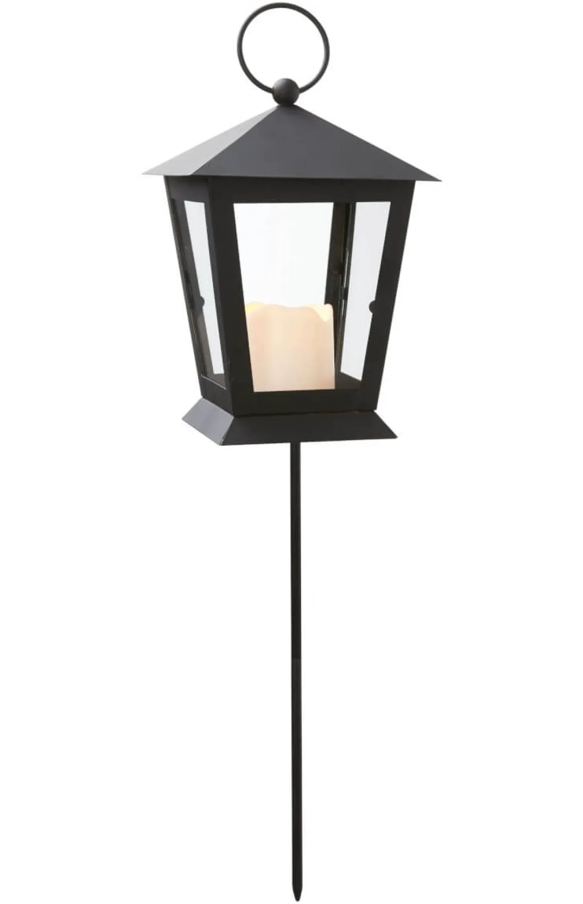 Stilren gravlykta i svart metall från Star Trading, inuti lyktan sitter ett batteridrivet ljus som styrs med en inbyggd timer så att du enkelt kan ställa in när du vill att det ska lysa.