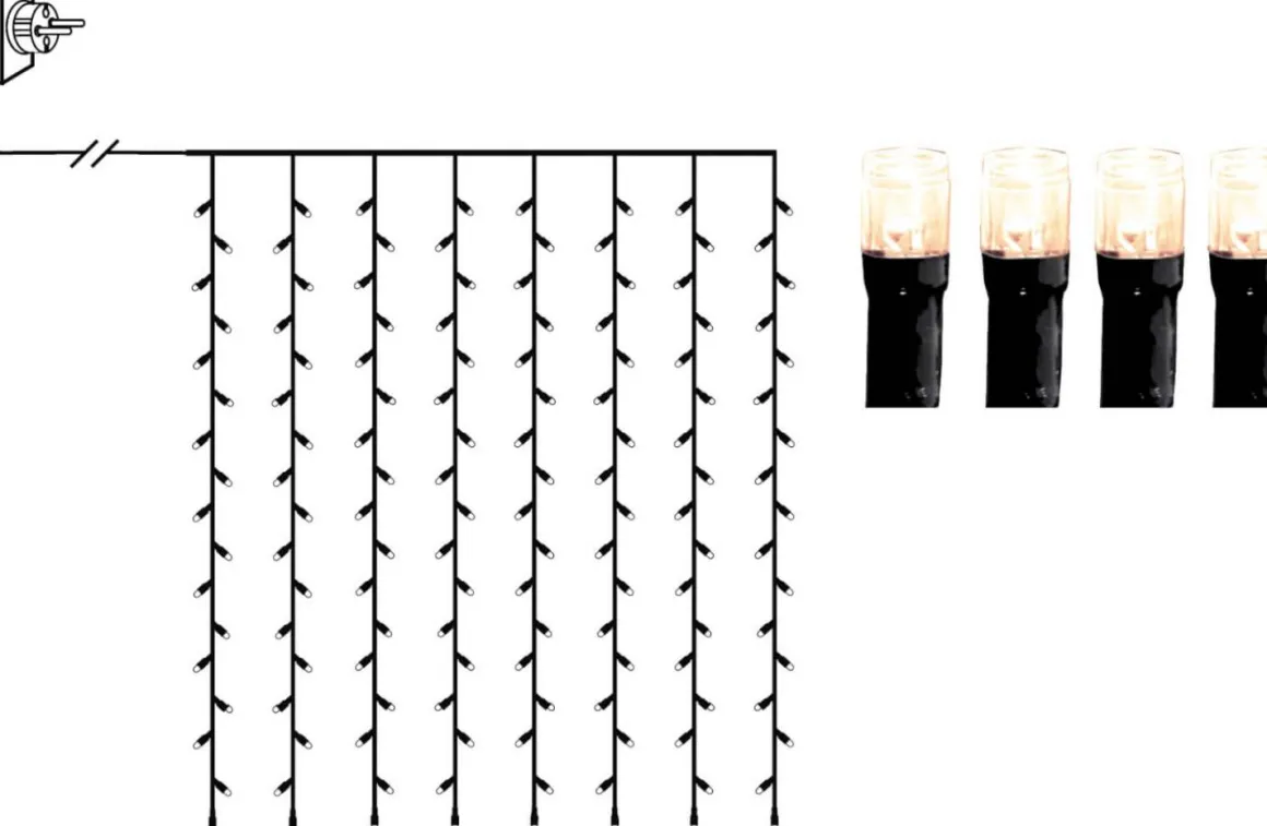 Gardinslinga med 80 LED lampor från Star Trading med vackert, lite kallare krispigare ljussken. Gardinen har en storlek av 1,3 x 1,3m. Perfekt för dekoration i din trädgård eller balkong.