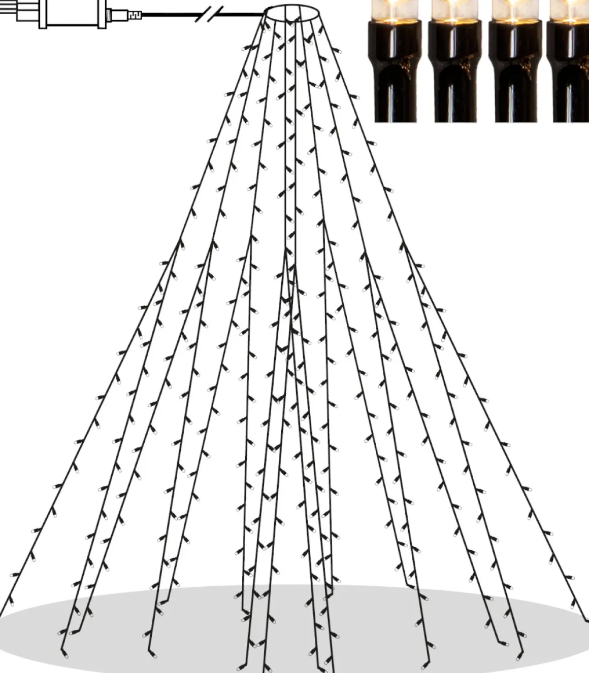 Fiffig Julgransslinga från Star Trading med 360 LED lampor med vackert varmvitt ljus (2700K). Slingan är ca 2 meter hög med 8 strängar som delar sig för att få en jämn spridning av lysdioderna. Perfekt för din julgran eller enbuske. Slingan är godkänd både inne och utomhus.