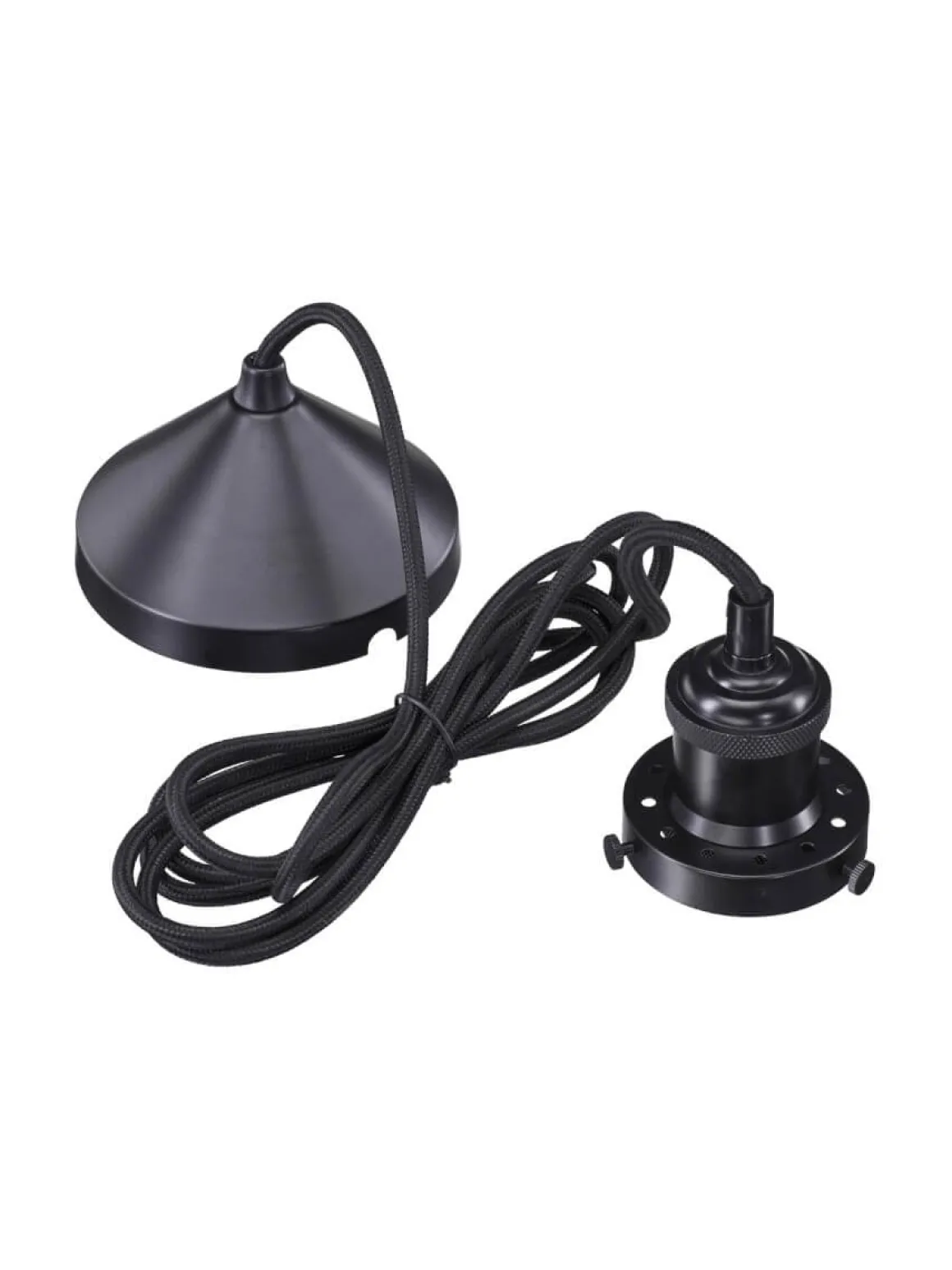 Siri takupphäng i svart från PR-Home. 2,5m svart textilkabel med takkopp för krokupphäng. Skärm, ljuskälla och takkontakt ingår ej. Upphänget passar skomakarglas, August och Elly.