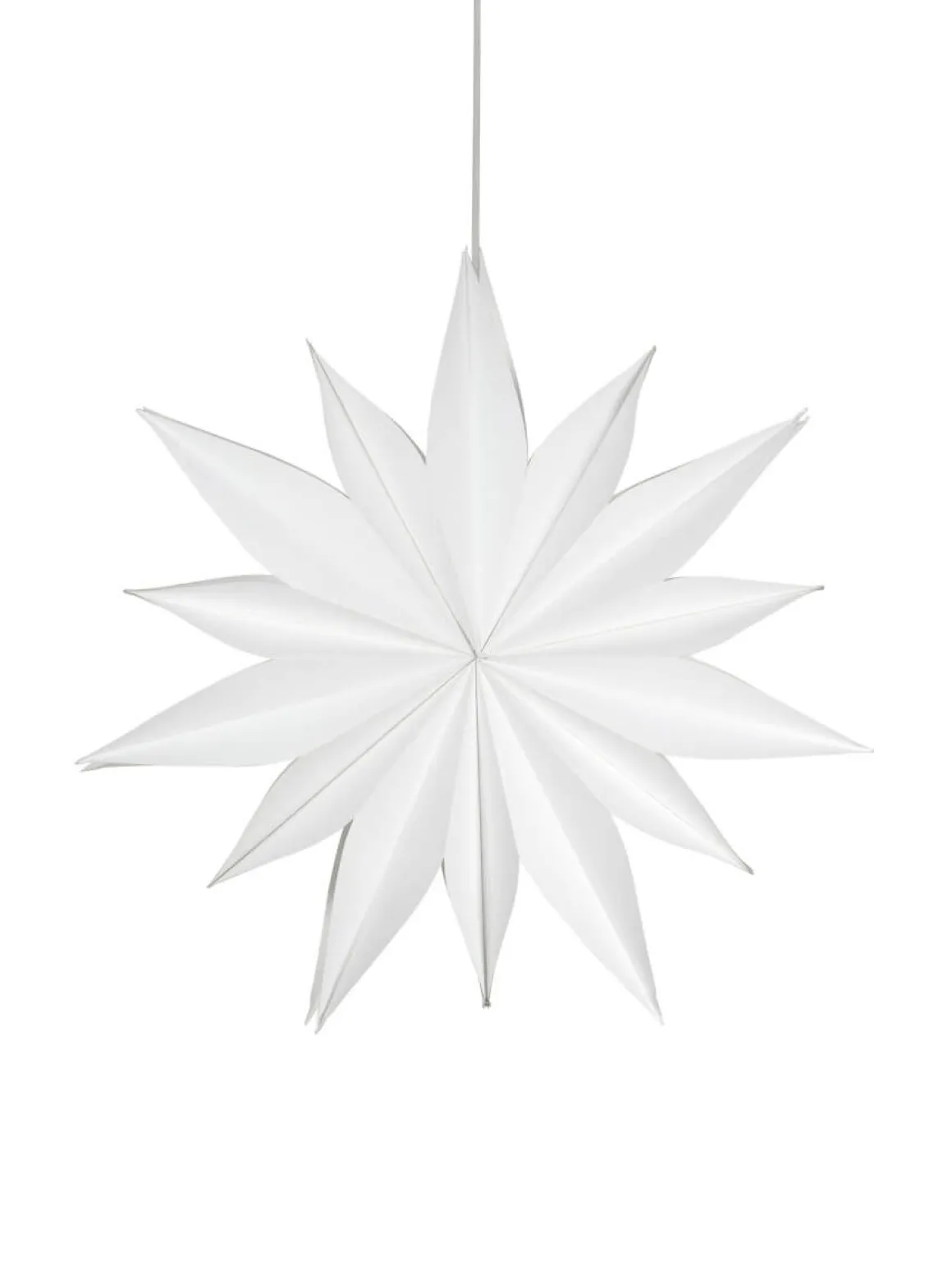 Vacker och stilren Julstjärna i papper från PR-Home. Stjärnan är av en lite kraftigare kvalitet med stansade hål i den inre stjärnan som silar ljuset på ett vackert sätt. Stängs med kardborre och knytband. Köp till E14 sladdställ och ljuskälla, max 25W. Höjd 60cm, bredd 60cm och djup 21cm