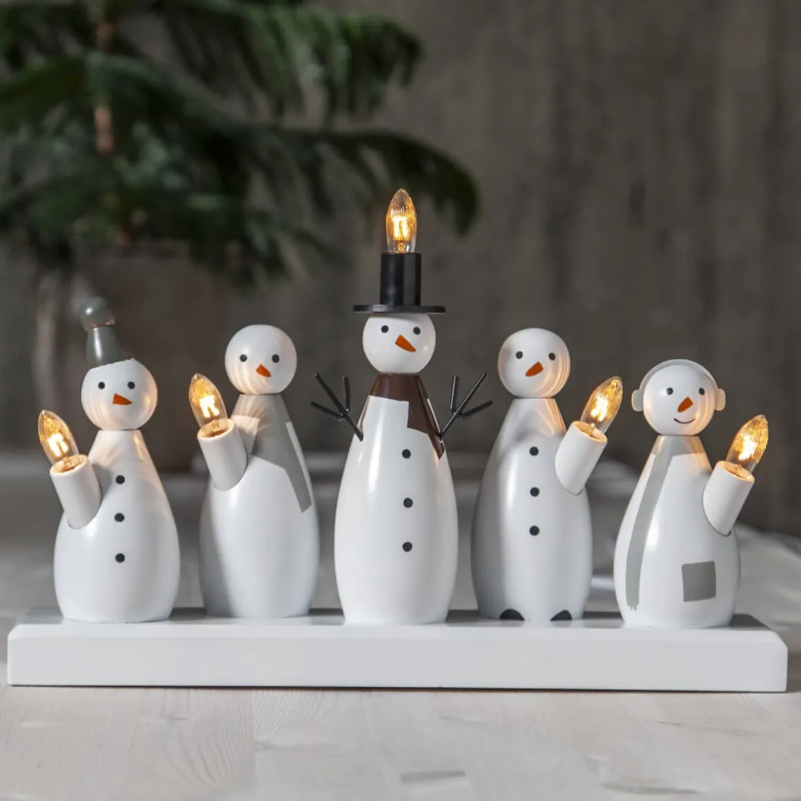 Så söt liten juldekoration med 5 små snögubbar i rad, den lilla ljusstaken ger ett härligt glatt intryck och passar såväl i fönstret som på en liten skänk eller varför inte på diskbänken?