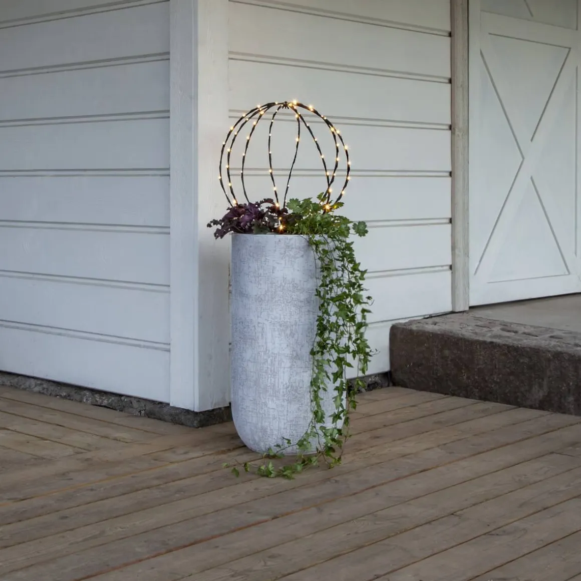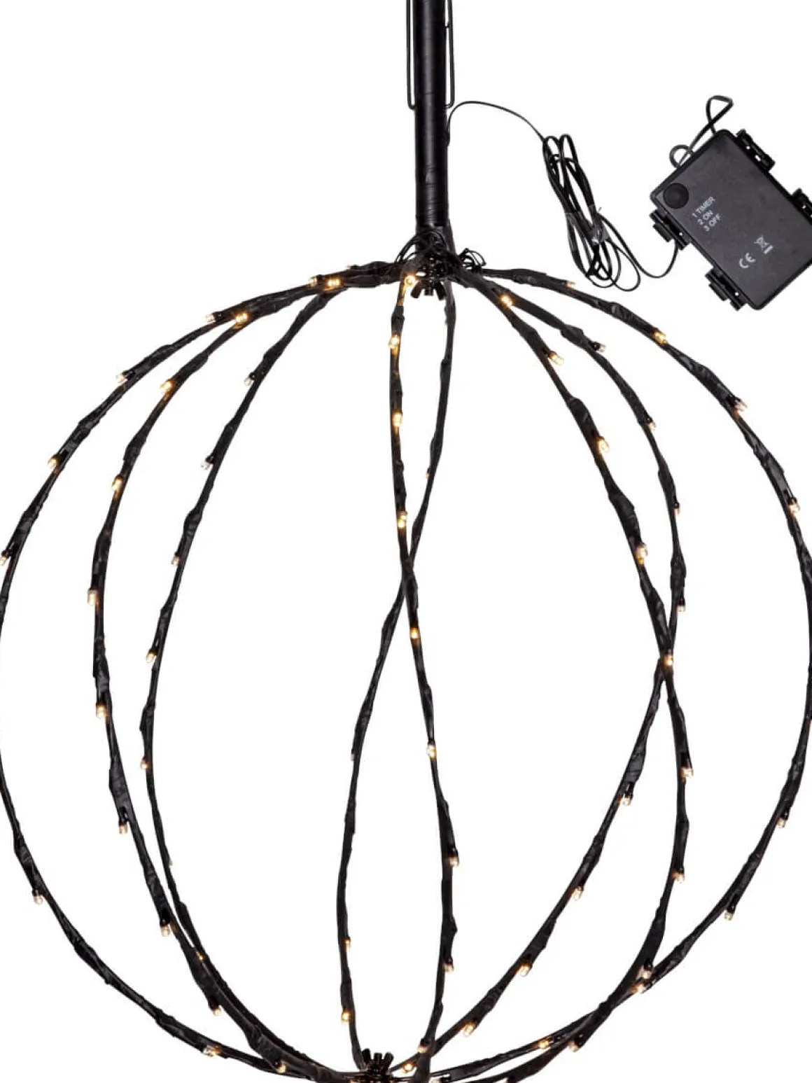 Sphere från Star Trading är ett dekorativt klot med 88 varmvita ljuspunkter, 40cm i diameter som ger ett härligt ljus till din trädgård. Produkten kan användas som både hängande och stående, markspettet är avtagbart och det finns en krok för upphäng, för att inte belasta kabeln rekommenderar vi att du använder en kedja eller rep att hänga klotet i. Batteribox för utomhusbruk. Klotet är hopvikbart vilket sparar utrymme när den inte används. Sphere finns i 3 storlekar här ser du den mellersta.