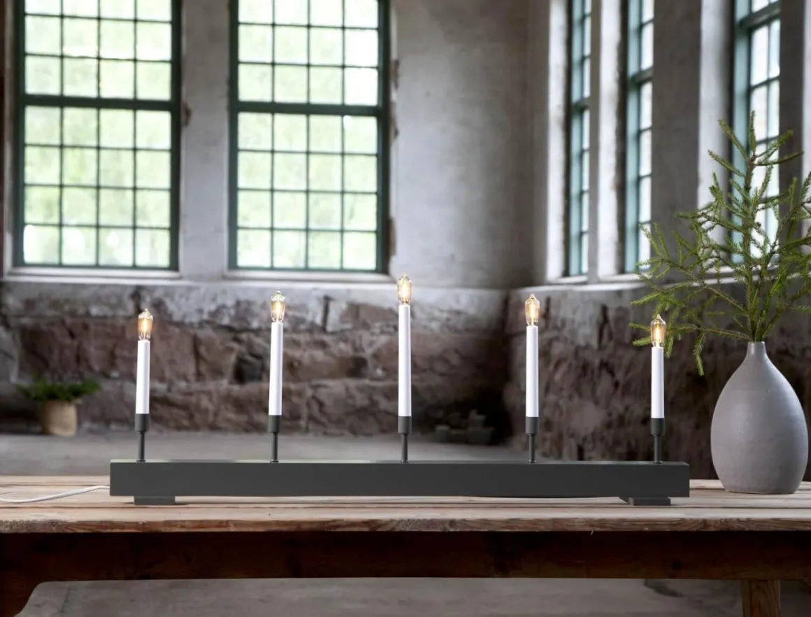 Toppmodern grå rak ljusstake som förmedlar ett elegant och enkel uttryck till både hemmet och den offentliga miljön. Storm sprider ett behagligt ljus med sin 5 ljuskällor.