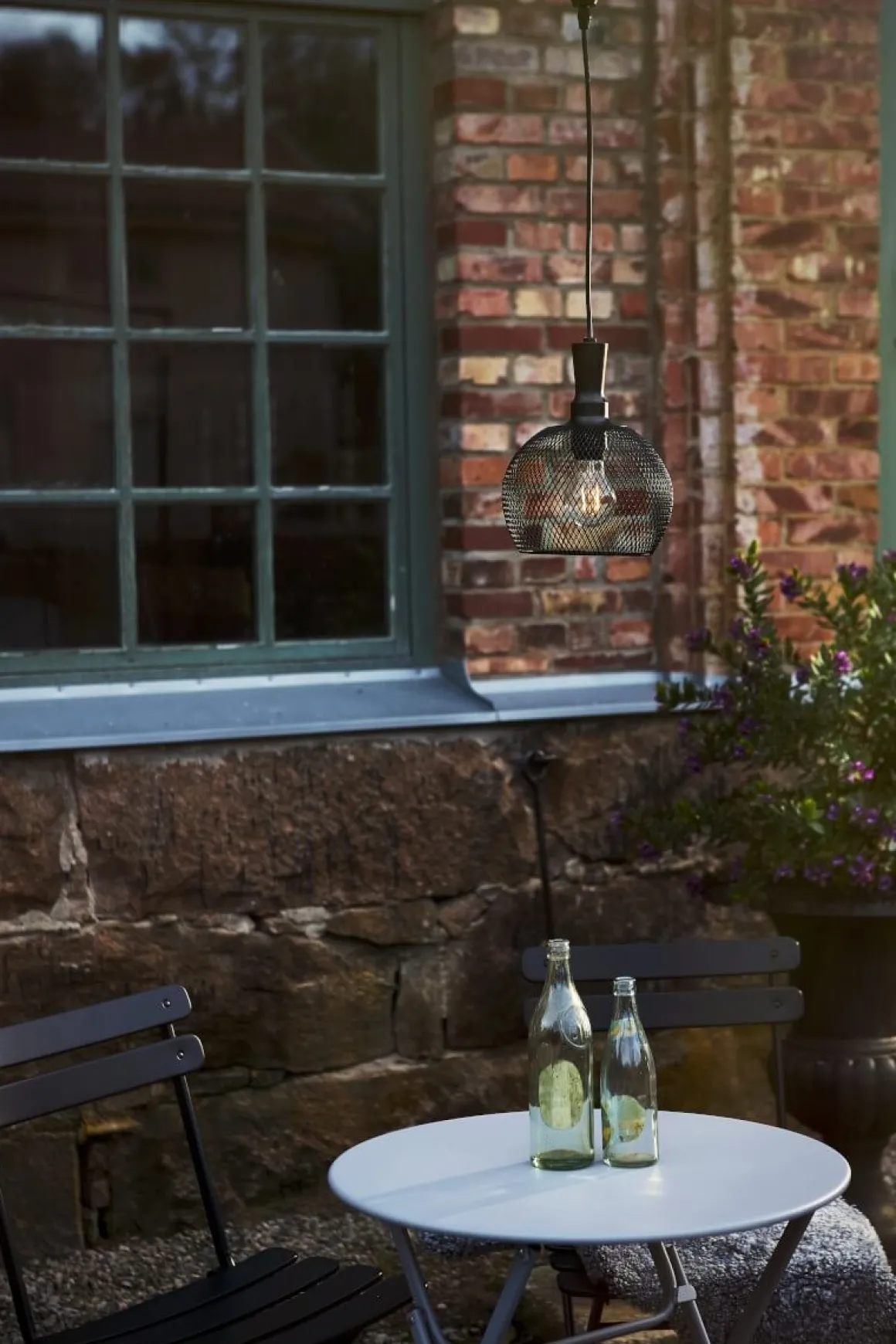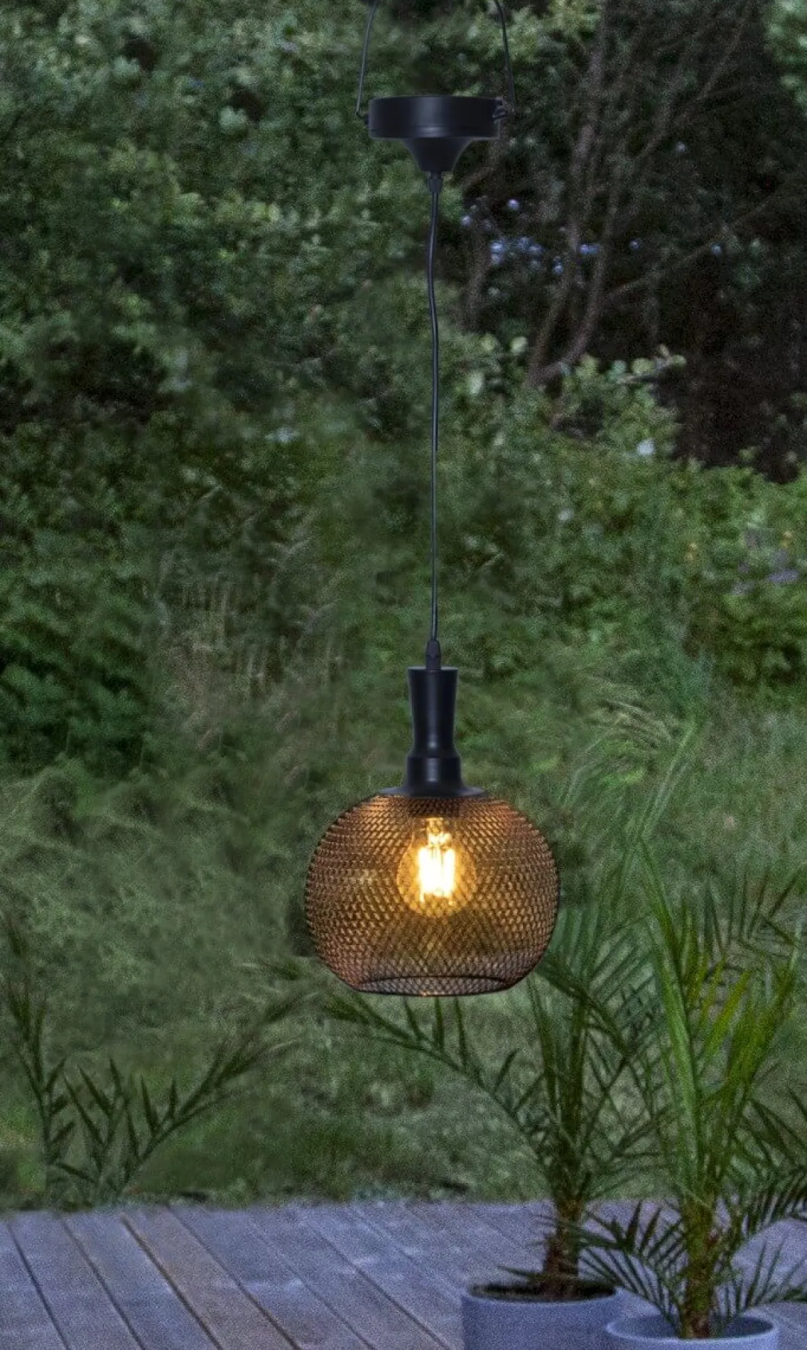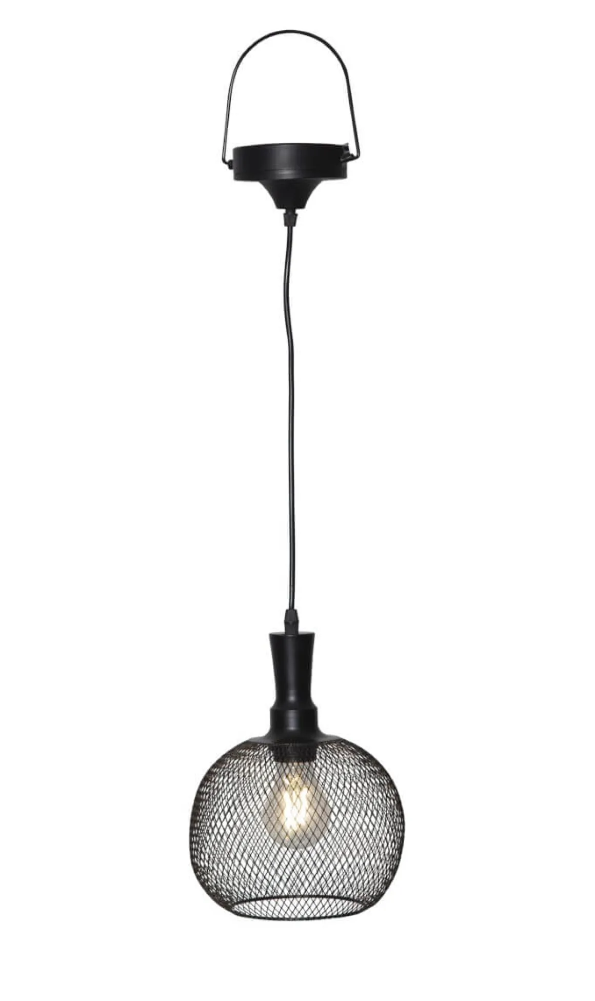 Härlig solcellsdriven lampa i svartlackad metall från Star Trading, perfekt att hänga över bordet utomhus, laddas av solen för att tändas upp när det mörknar.