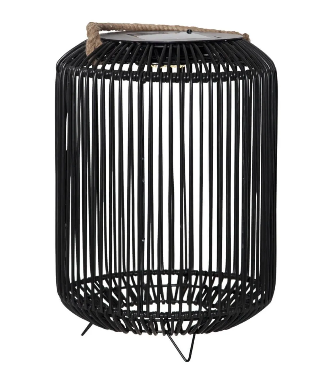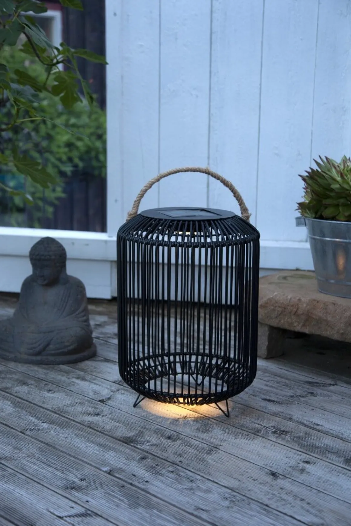 Solcellsdriven svart dekorationskorg från Star Trading som lyser upp med ett härligt varmvitt sken under natten. En fin dekoration till trädgården, uteplatsen eller balkongen.