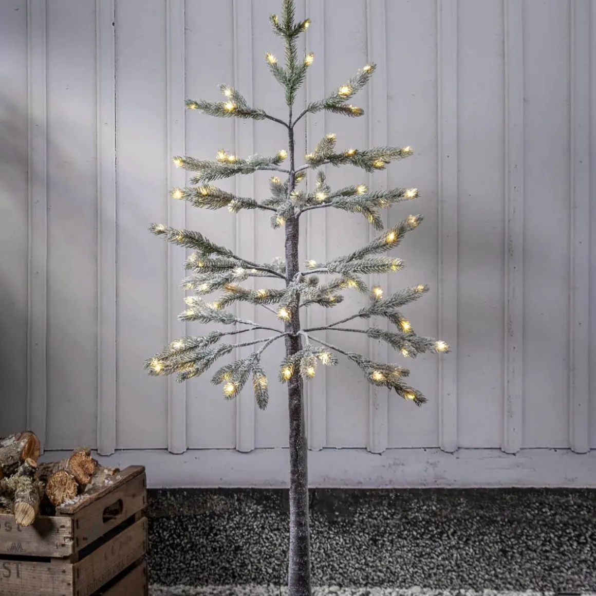 Läckra granen Tanne från Star Trading är ca 120 cm hög och 58 cm bred. De bruna grenarna som sitter på en stam har små gröna grankvistar som är tillverkade av PE. Tanne är beströdd med lite snö för att ge en härlig julkänsla. Med 95 varmvita ljuspunkter lyser den upp vackert både inomhus såväl som utomhus. Slingan drivs av en transformator. Basen är fyrkantig och det följer med 4 markpinnar som man kan förankra granen med om man använder den utomhus. I samma familj finns även två storlekar till.