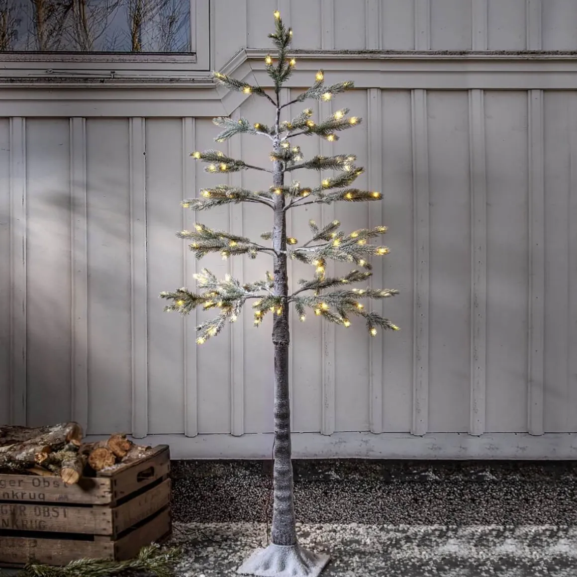 Läckra granen Tanne från Star Trading är ca 150 cm hög och 65 cm bred. De bruna grenarna som sitter på en stam har små gröna grankvistar som är tillverkade av PE. Tanne är beströdd med lite snö för att ge en härlig julkänsla. Med 155 varmvita ljuspunkter lyser den upp vackert både inomhus såväl som utomhus. Slingan drivs av en transformator. Basen är fyrkantig och det följer med 4 markpinnar som man kan förankra granen med om man använder den utomhus. I samma familj finns även två storlekar till.