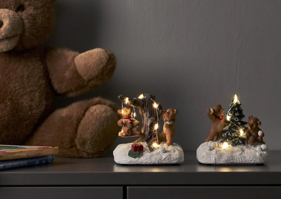 Litet set bestående av 2 delar med de små busiga nallebjörnarna. Dekorationerna drivs med AAA batterier och har självklart en inbyggd timer så att du lätt kan ställa in när de ska lysa. Batterier köpes separat.