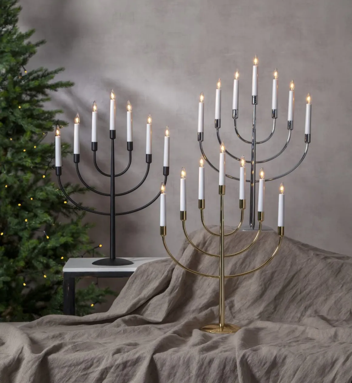Star Tradings eleganta metalljusstake Titus här i svart uppdaterad med den senaste ljuskällan. 7 ljuskällor av modellen soft glow. Sprider ett härligt ljus och skapar julstämning.