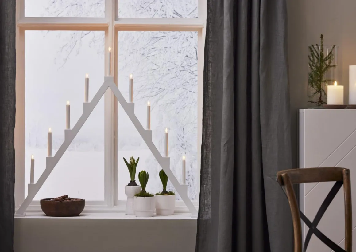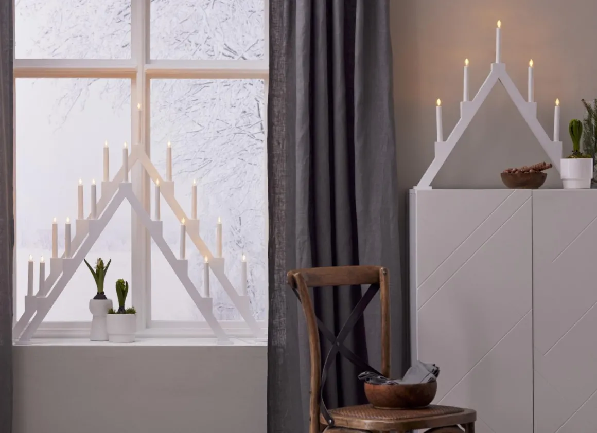 Vit stor adventsljusstake i FSC®-märkt trä för en klassisk julstämning med modern touch. Perfekt för fönster, sprider ett varmt och behagligt ljus. FSC® står för Forest Stewardship Council, en certifiering som garanterar hållbart skogsbruk och miljöansvar. Skapa mysig julbelysning med denna stilrena ljusstake!