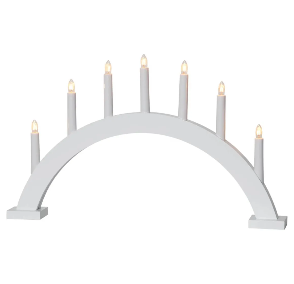 Vit bågformad träljusstake med 7 ljus. Med sin enkla och stilrena design passar den utmärkt i både hem å stuga.