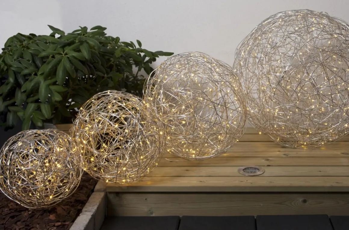 Läcker dekorativ silverfärgad version av Trasselbollen för både inom- och utomhusbruk. Inuti dekorationen finns en LED-ljusslinga med 200 stycken ljuspunkter som avger ett varmvitt sken. Designad av Charlotte Falck.