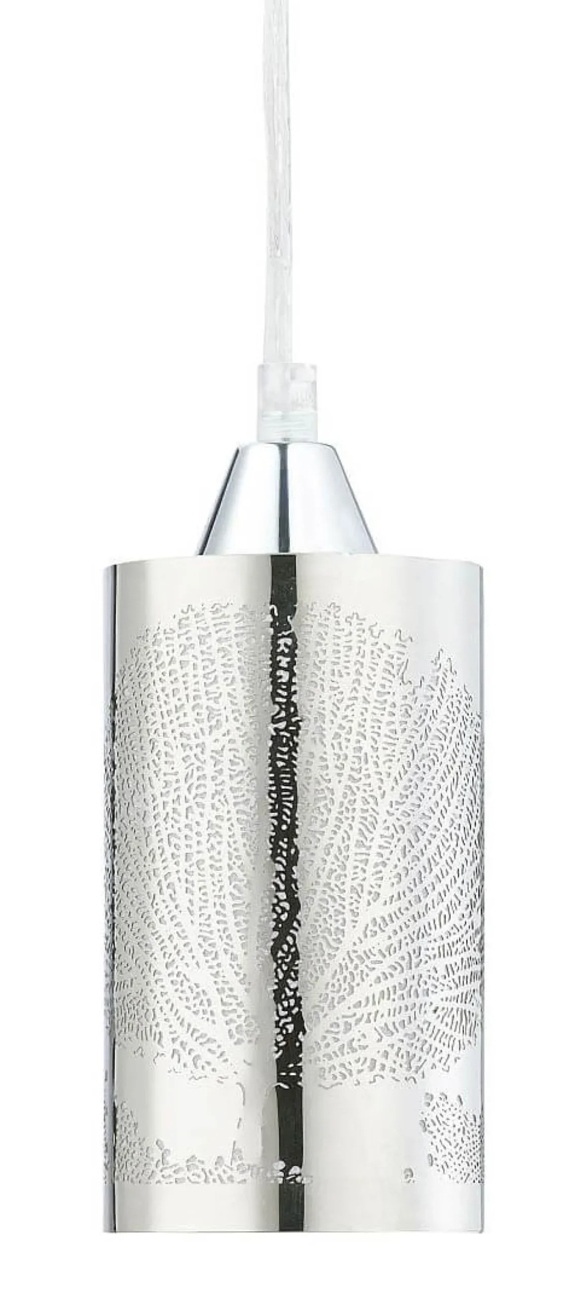 Kromad fönsterlampa från Oriva i laserskuren tunn metall som bildar formen av ett träd som blir extra tydligt när lampan är tänd.