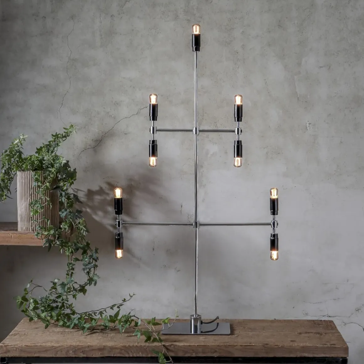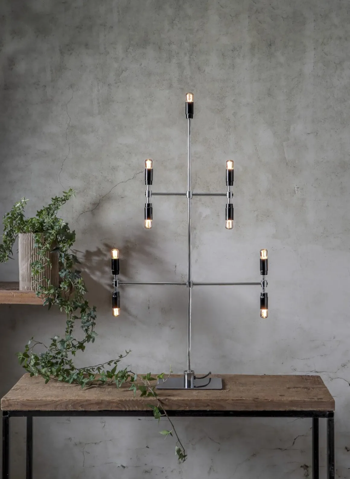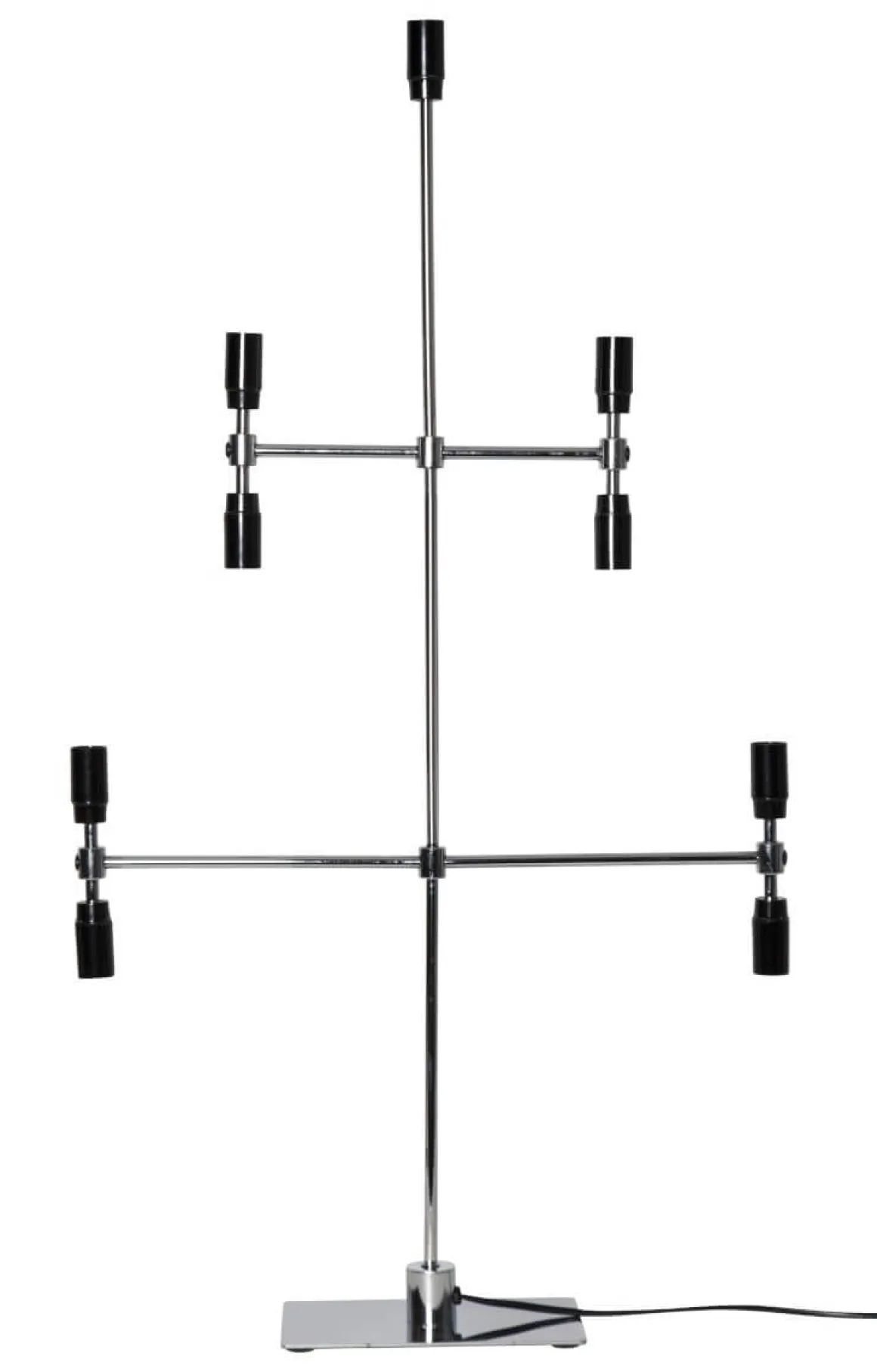 Modern ljusstake i kromad metall med svarta lamphållare från Star Trading med den spännande lilla detaljen att den har dubbla lamphållare. Dekorera underverket med ditt egna val av ljuskälla för att sätta din personliga stil på underverket. Passar lika bra under årets alla månader såväl som i juletid.