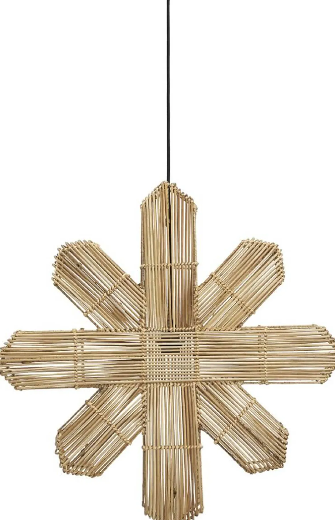 Vacker handgjord stjärna i rotting från PR-Home 69 cm i diamter, stjärnan kommer med en 3,5 meter lång svart textilsladd med väggkontakt. Vissa nyansskillnader kan förekomma i naturmaterialet.