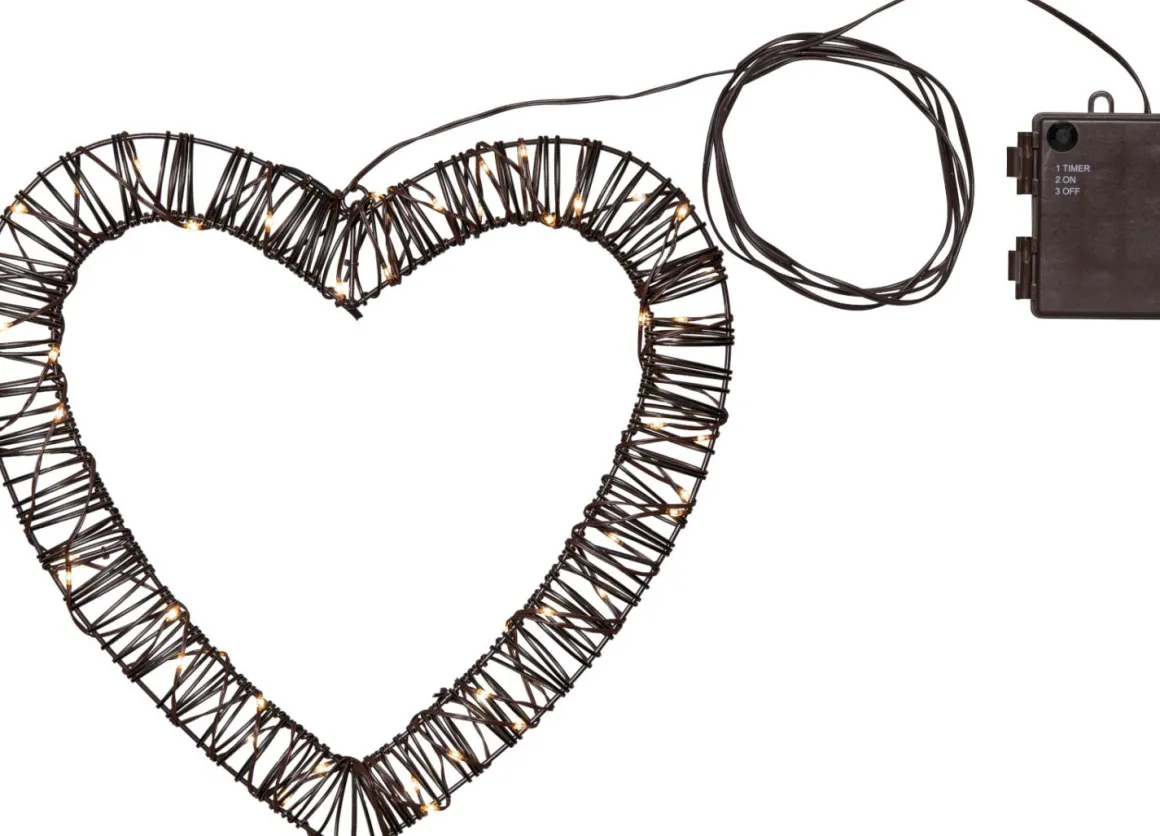 Vicke är en batteridriven utomhusdekoration från Star Trading i form av ett hjärta, 40 cm hög. Av brun konstrotting med metallstomme. Batteridosan drivs med 3 st AA batterier och har praktisk timerfunktion. En fin dekoration för uteplatsen och trädgården.